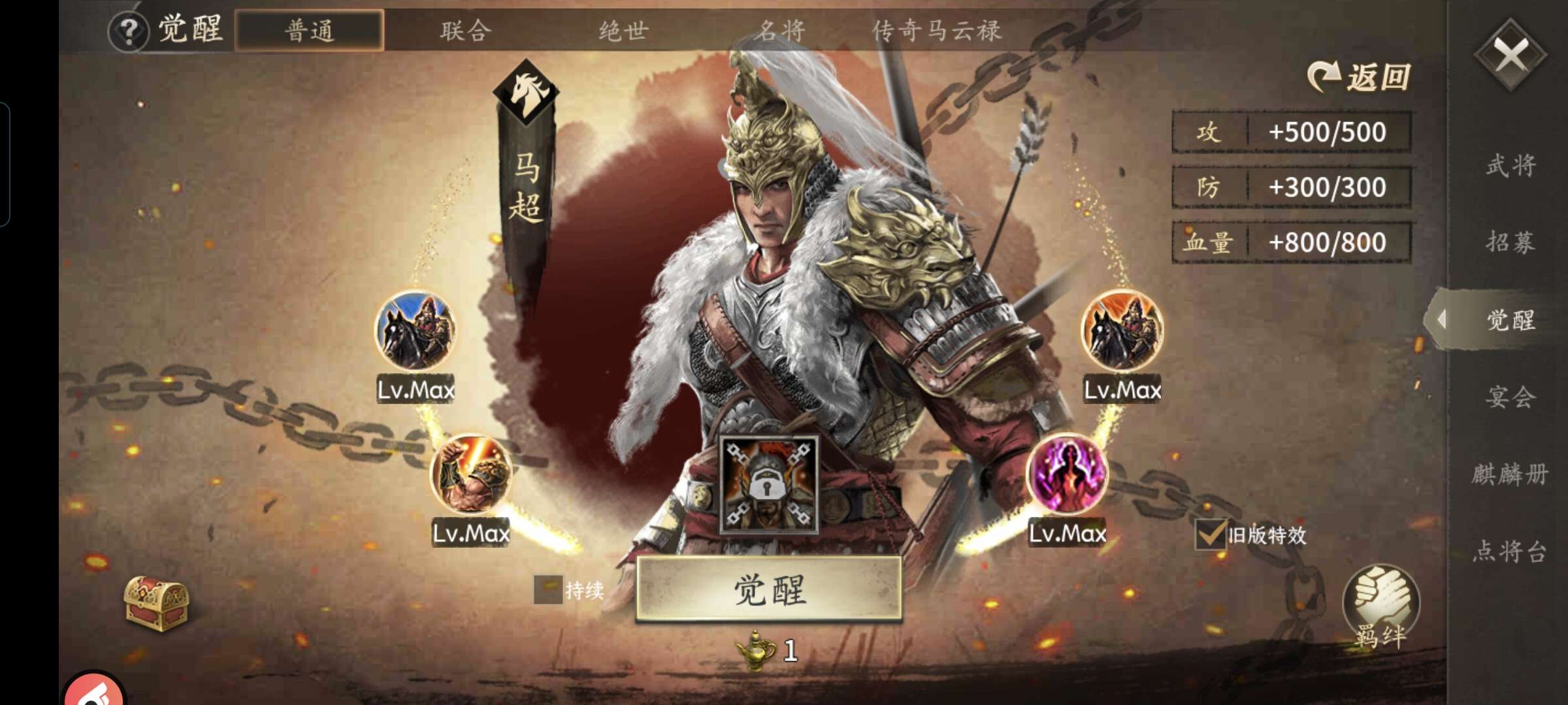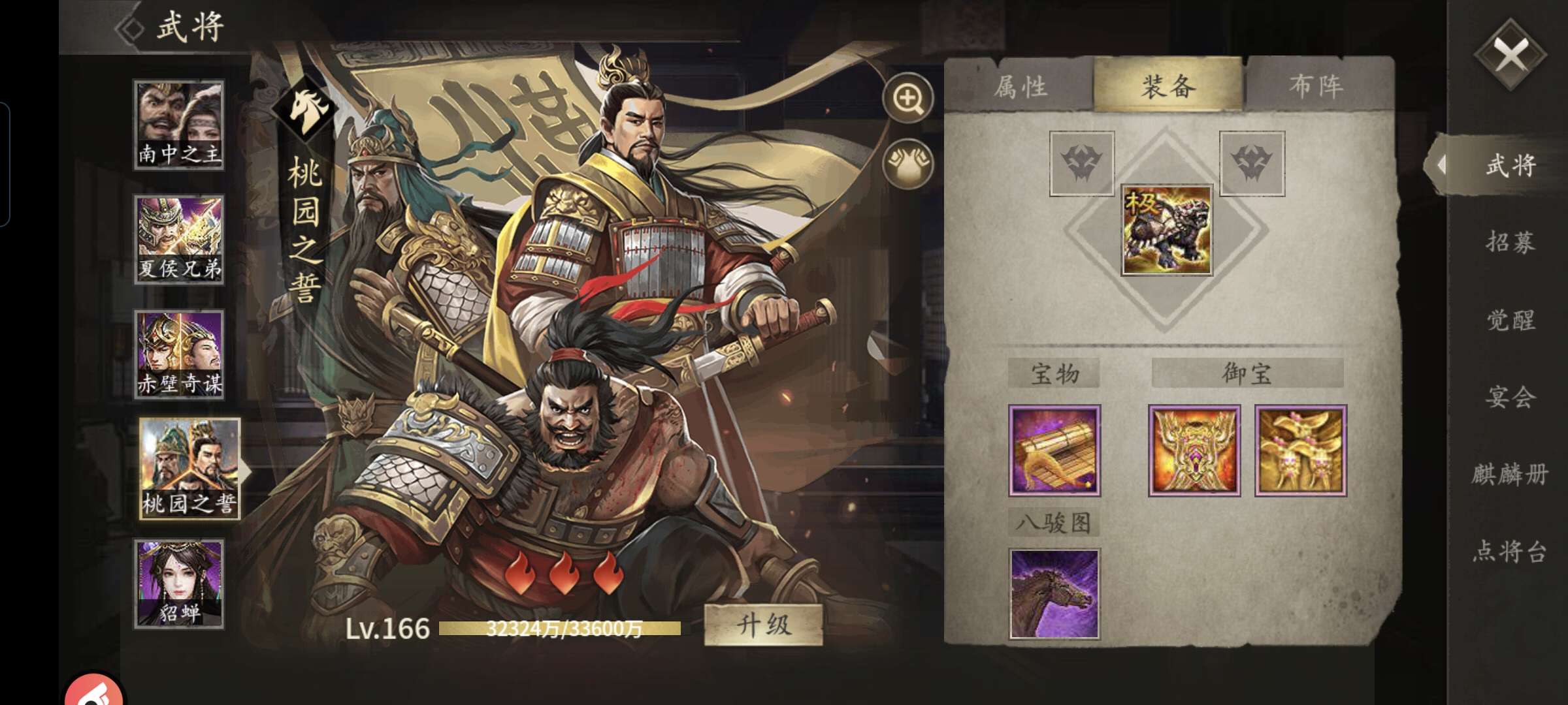 南中和刘关张都三层,马超和黄盖随时醒一旷世,其他都是至尊,刚充了活动还有一千多金币