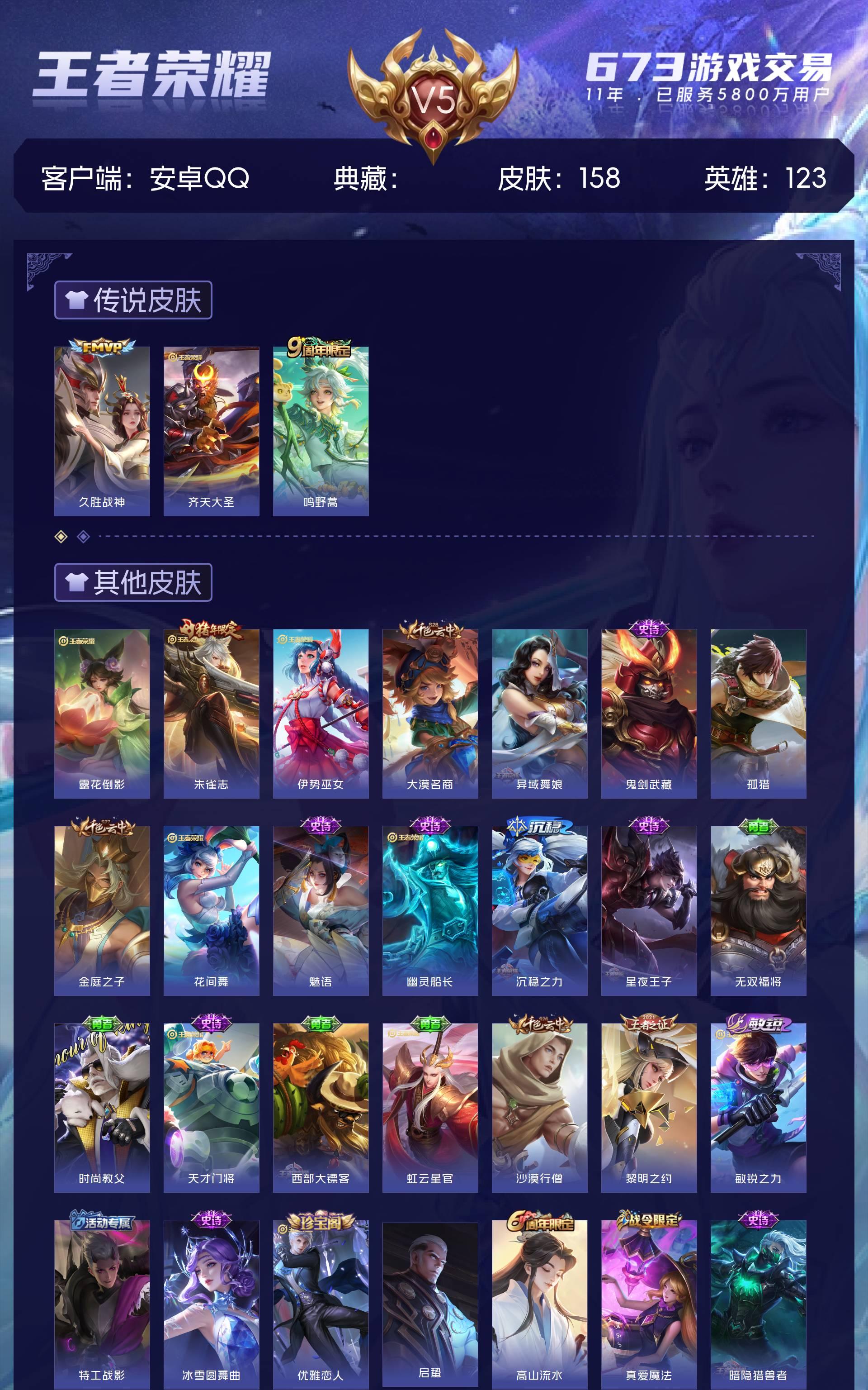 V5 皮肤158 英雄123 永恒钻石 传说3 其他皮肤162
