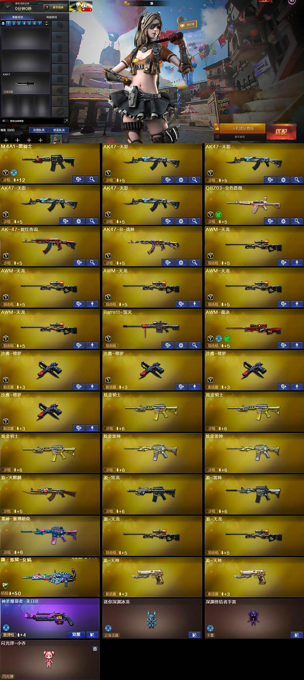 【英雄级武器】:M4A1-黑骑士,AK47-无影*4,QBZ03-金