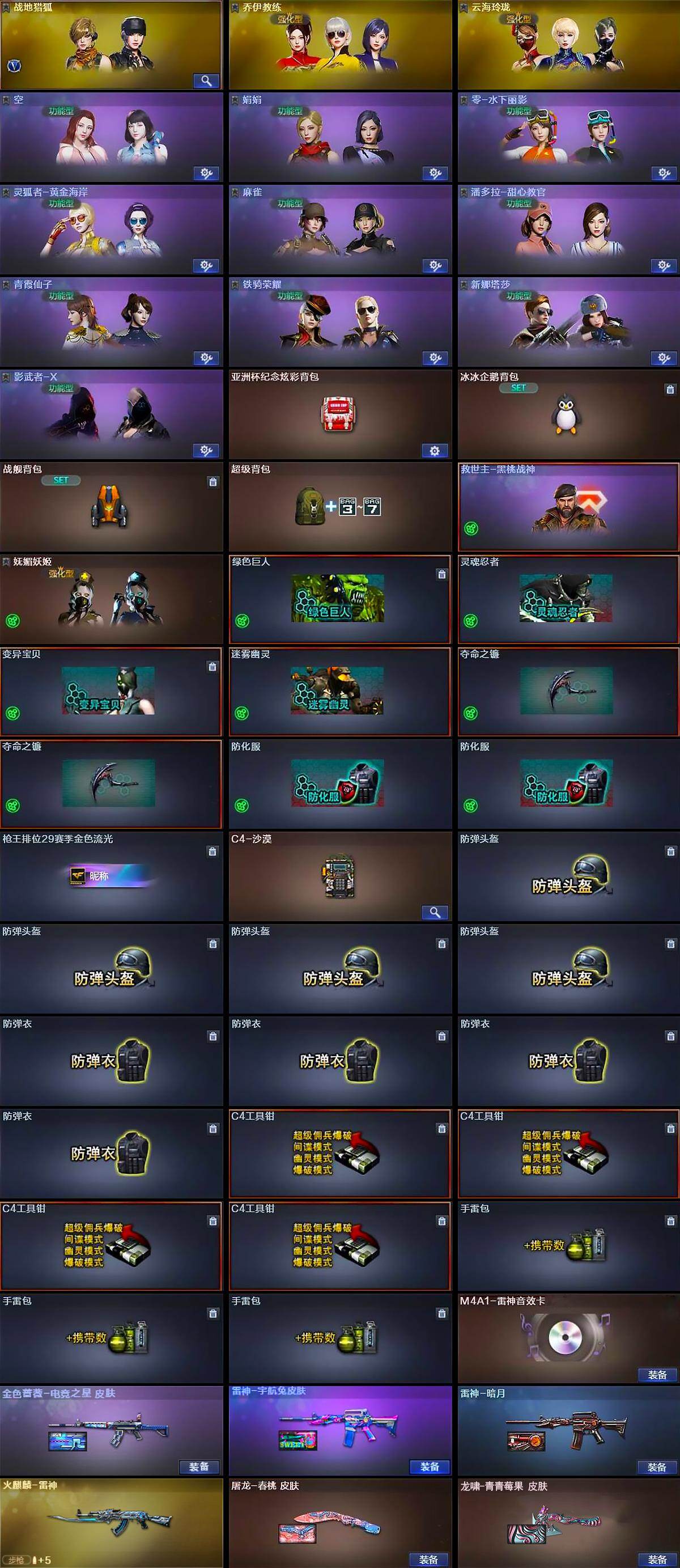 【角色】:战地猎狐,乔伊教练,云海玲珑,空,娟娟,零-水下丽影,灵狐者-黄金海岸,麻雀,潘多拉-甜心教官,青霞仙子,铁骑荣耀,兔囡囡,新娜塔莎,影武者-X