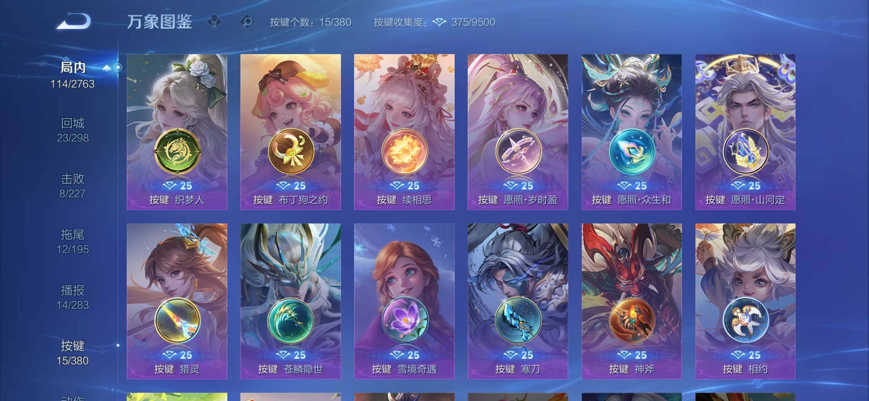 【传说皮肤】:西施续相思,司空震愿照山河定,妲己愿照众生和,虞姬愿照岁时盈,云缨幻光神枪,桑启鸣野蒿,夏侯惇霜北刀,典韦战鼓燎原,赵云淬星耀世,李元芳飞鸢探春,李信一念神魔,刘备时之恋人,貂蝉猫影幻舞