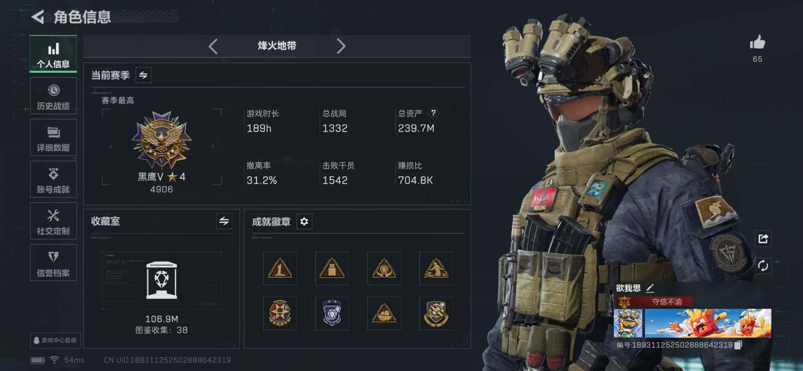 244m总资产-2715k哈伏币-60烽火等级-铂金-31战场等级-上等兵