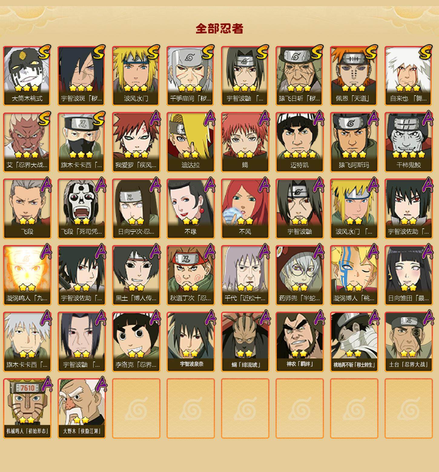V6/战力711W/S忍10/A忍32/通灵兽17/4星干柿鬼