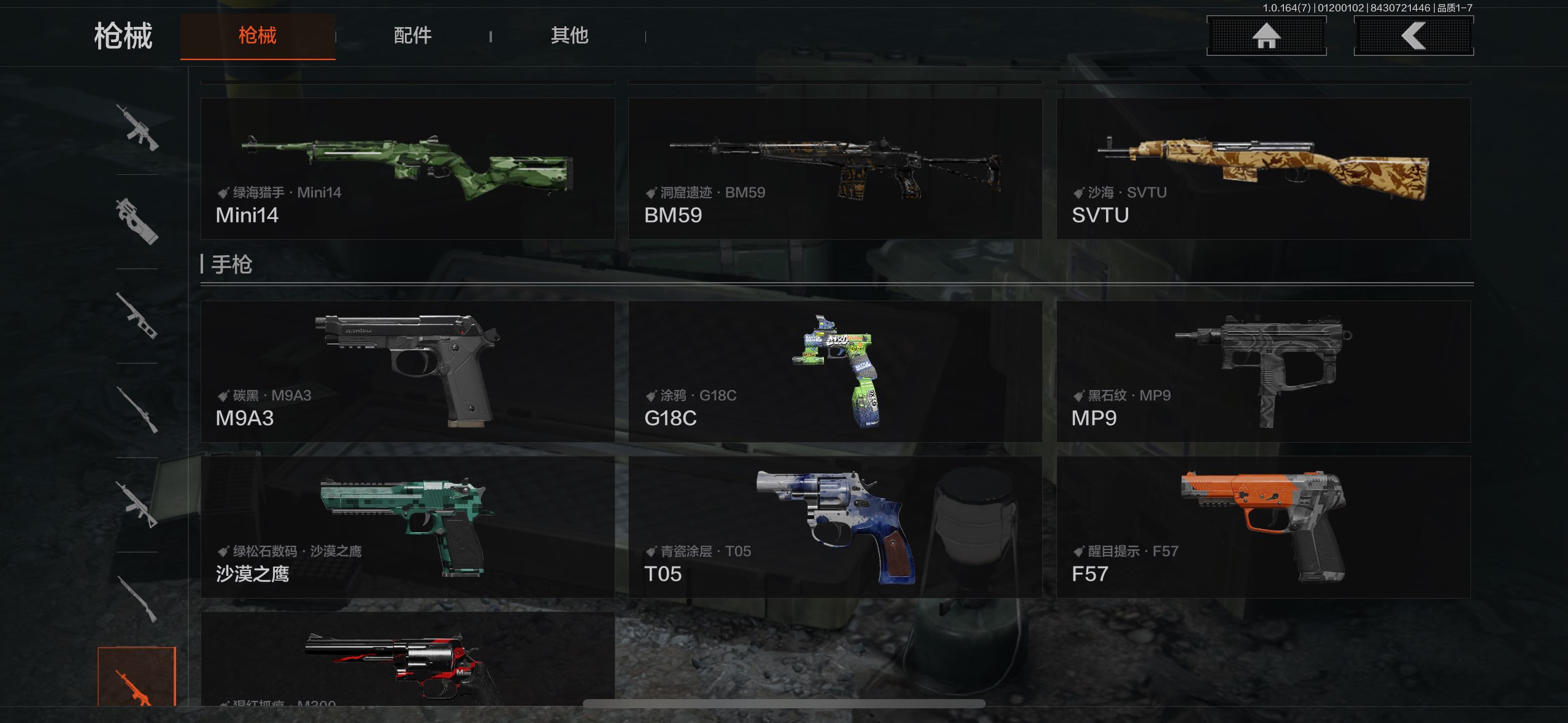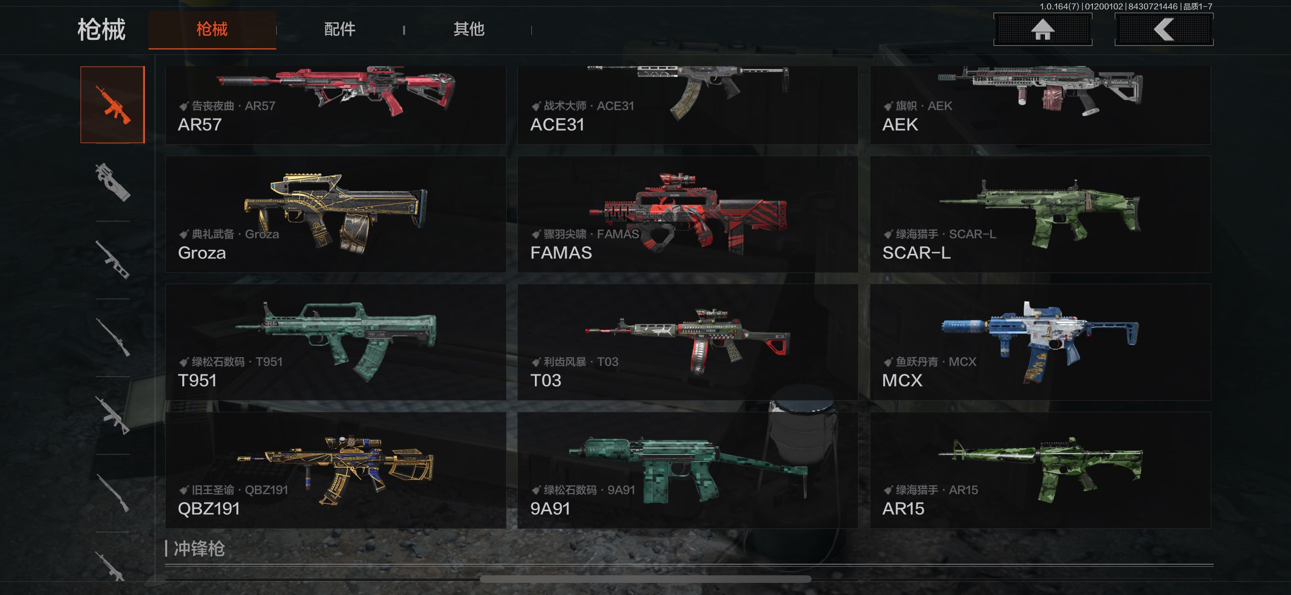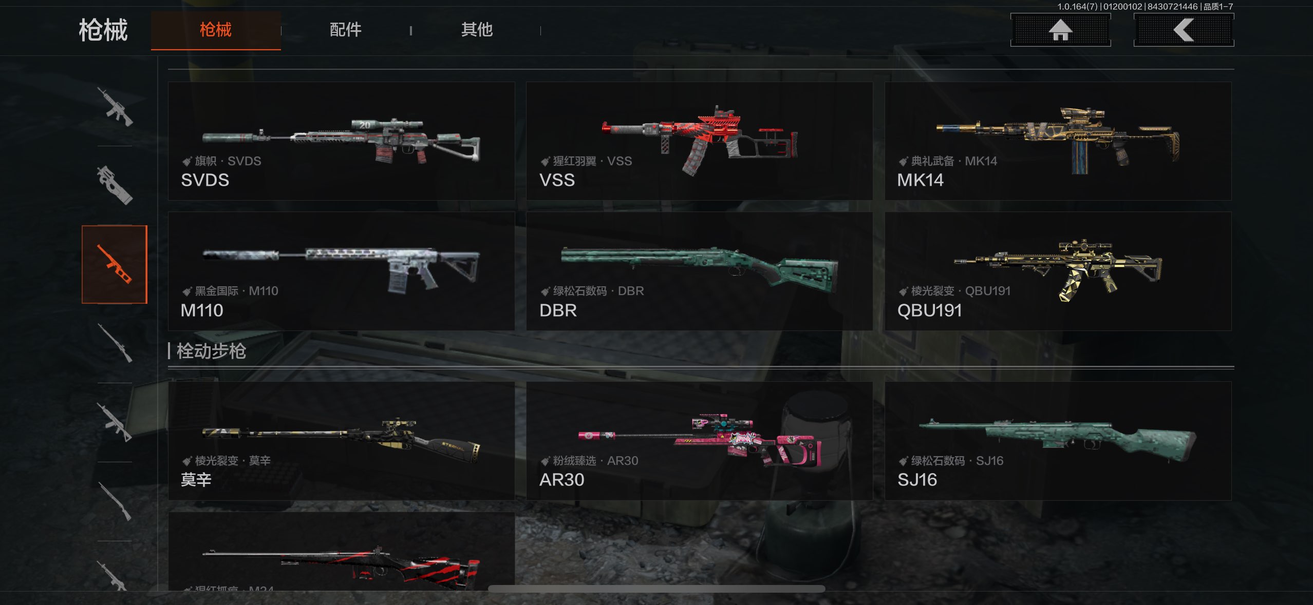 有蝴蝶刀和补牢,深潜者+冥河和使徒金皮,6把金枪皮仓库10m,王者7传说一体号,可2次,直接看图