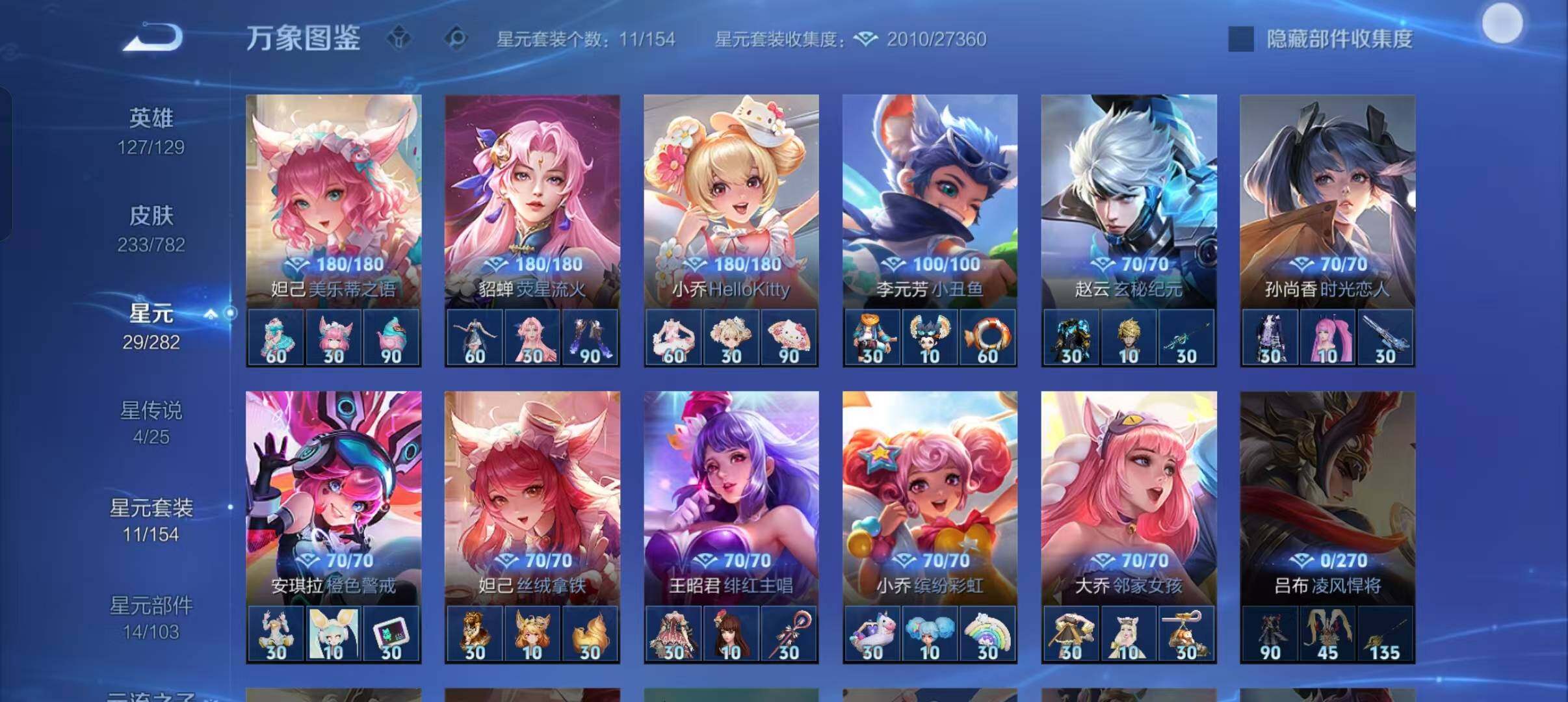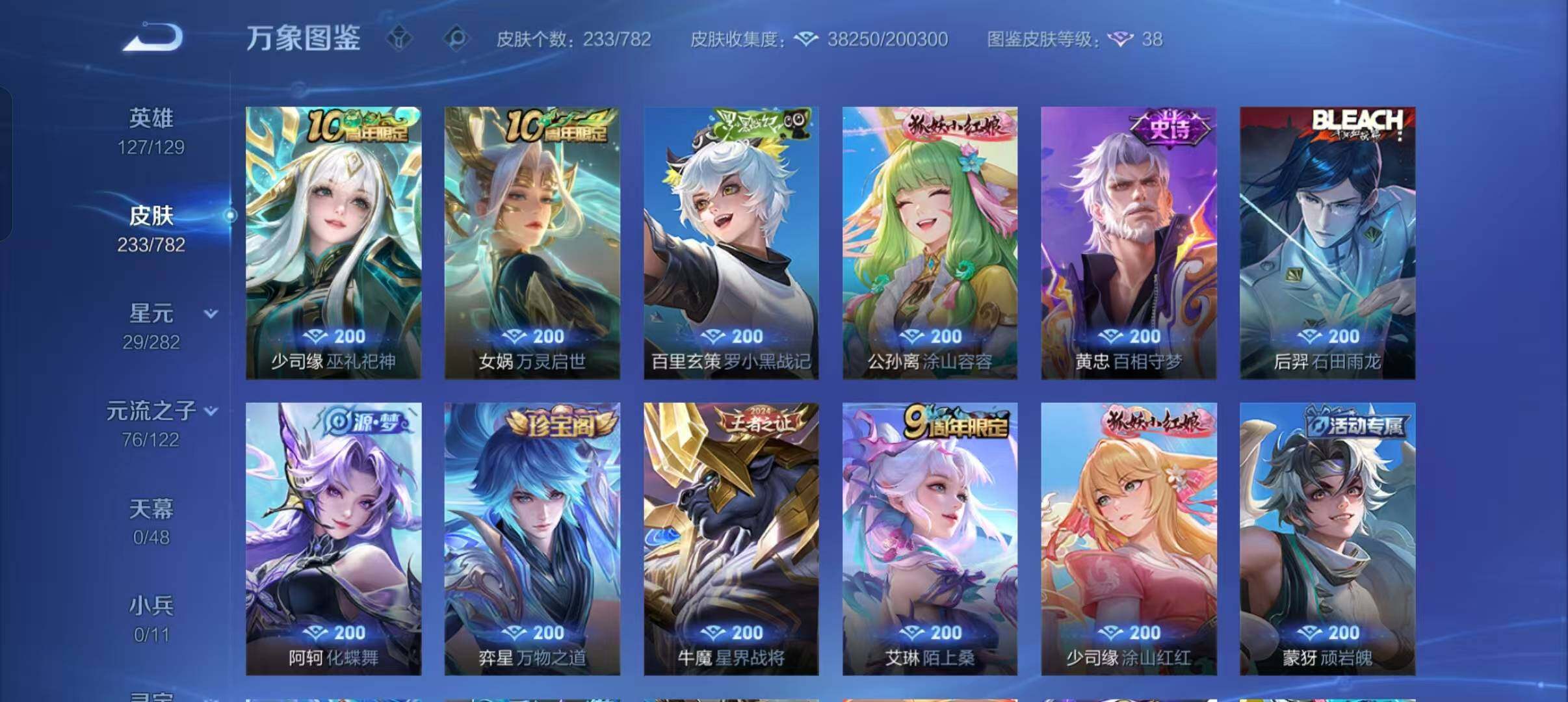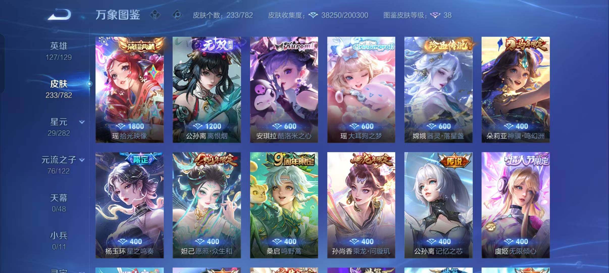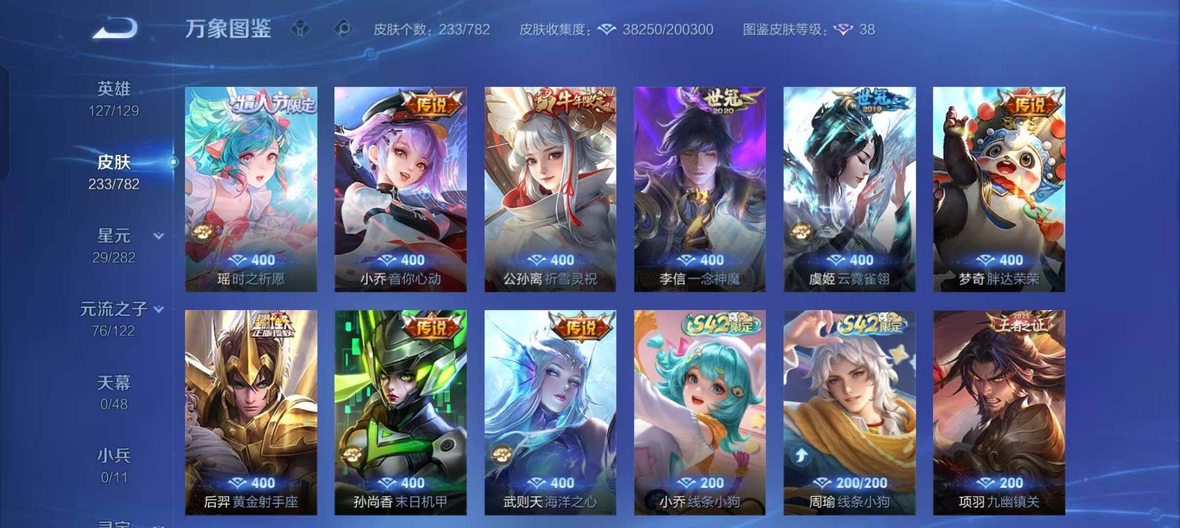 127英雄-233皮肤-12王者印记-300铭文-贵族积分2w