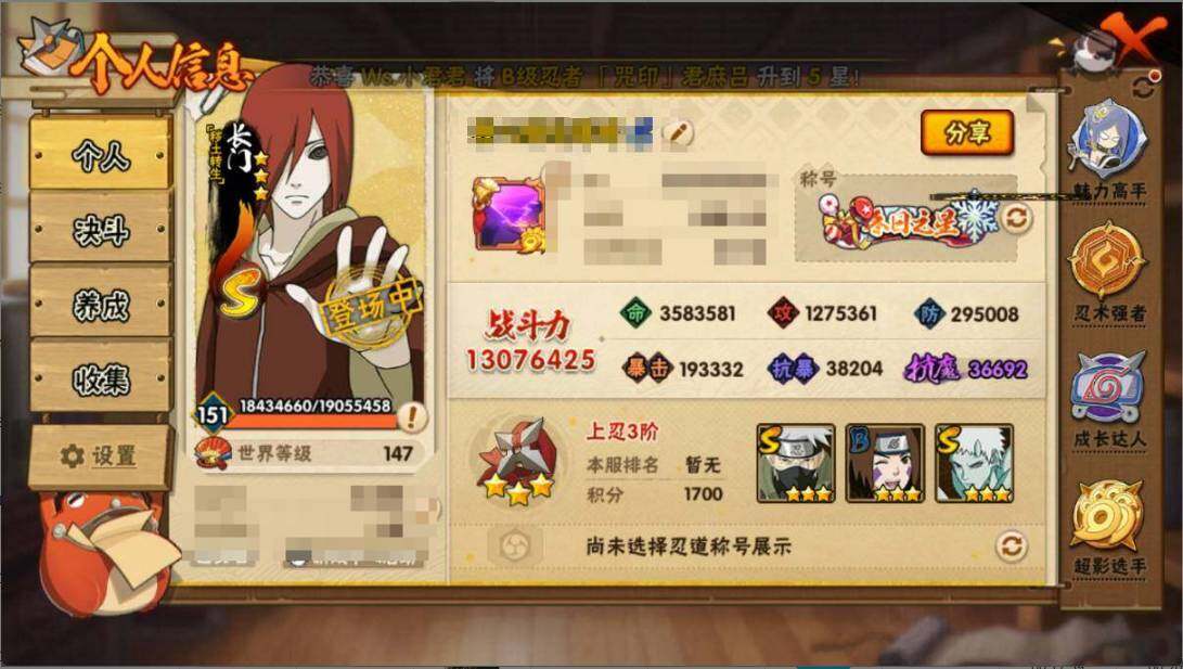 V6/战力1307W/S忍17/A忍34/百豪-纲手/