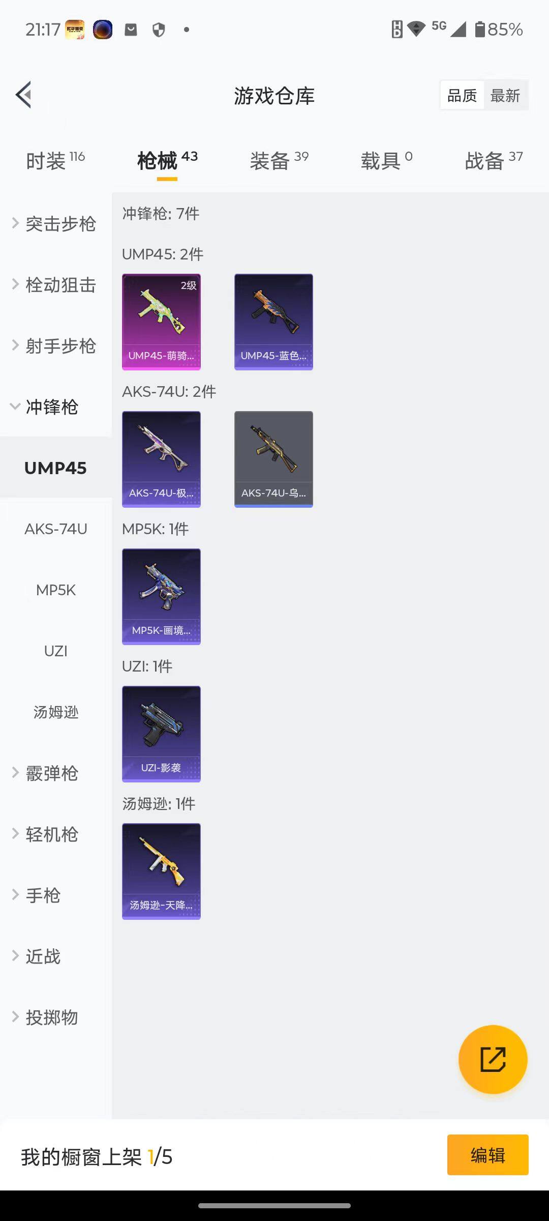 25套装/枪械3/装备39/战备37/热力值10392/二级UMP45-萌骑冒