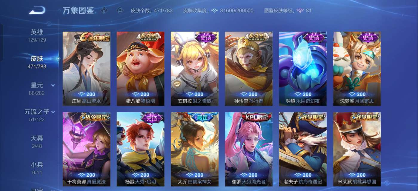 便宜极品v10号471皮5典藏1无双53传说和很多稀有限定2天幕3星传说很多星元