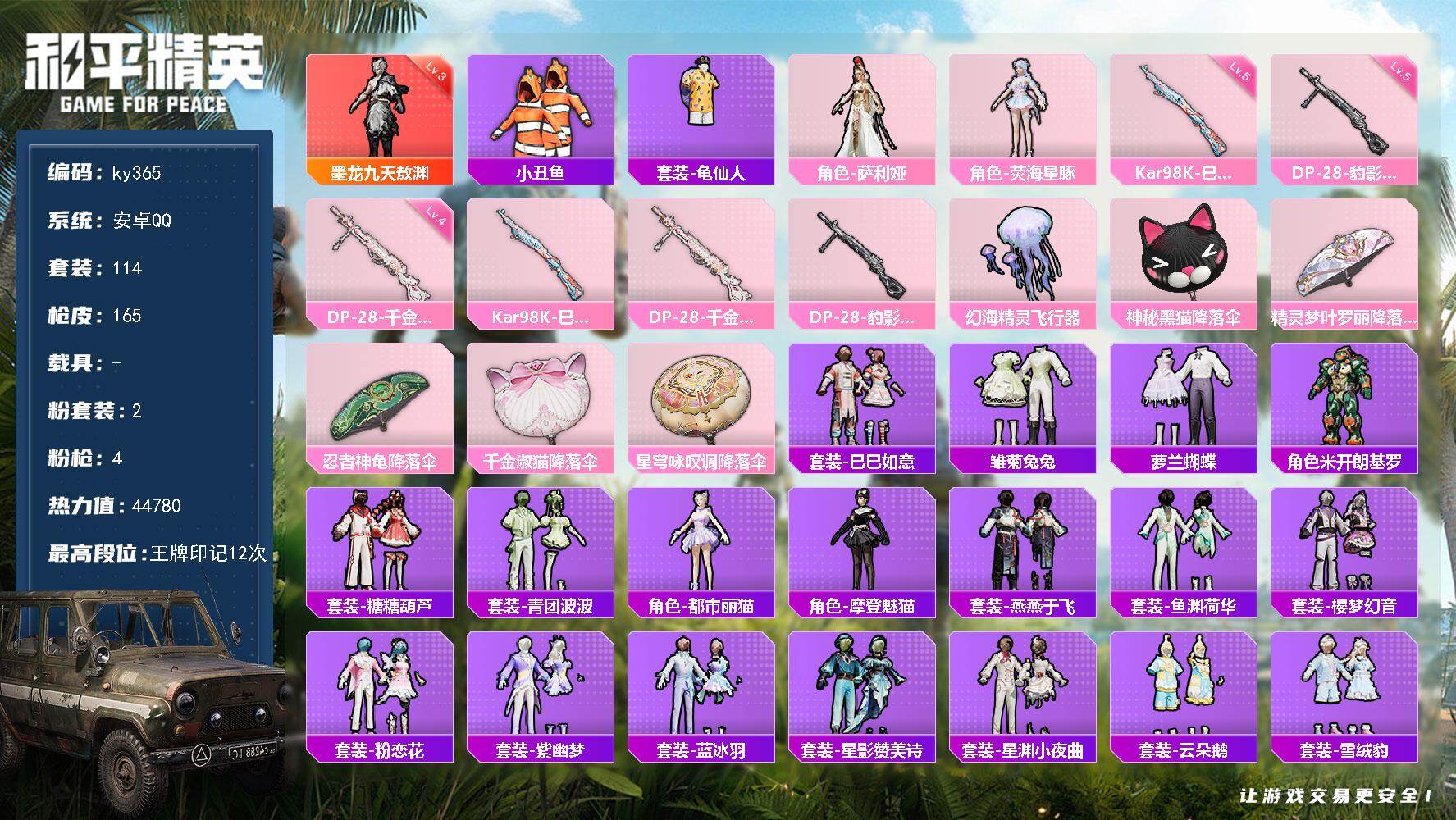 1神装-2粉装-4特效枪-0载具-1粉色飞行器