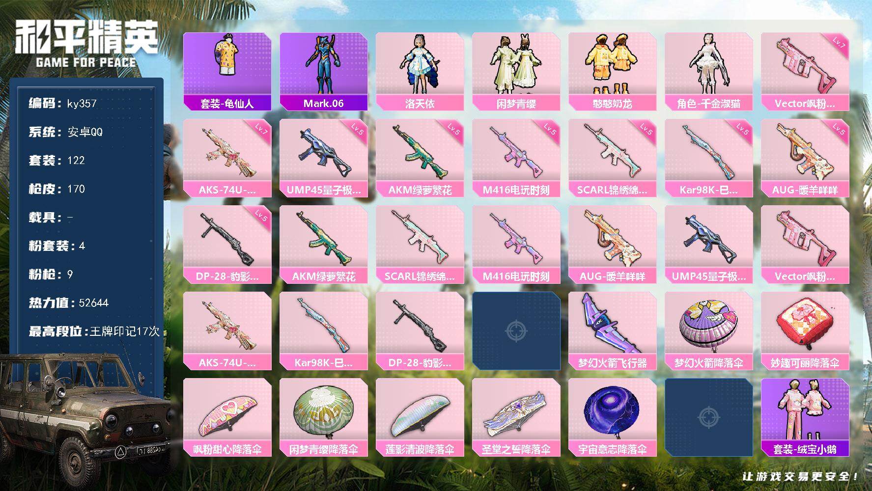 安卓 手Q-4粉装-9特效枪-0载具-2粉色飞行器-5264