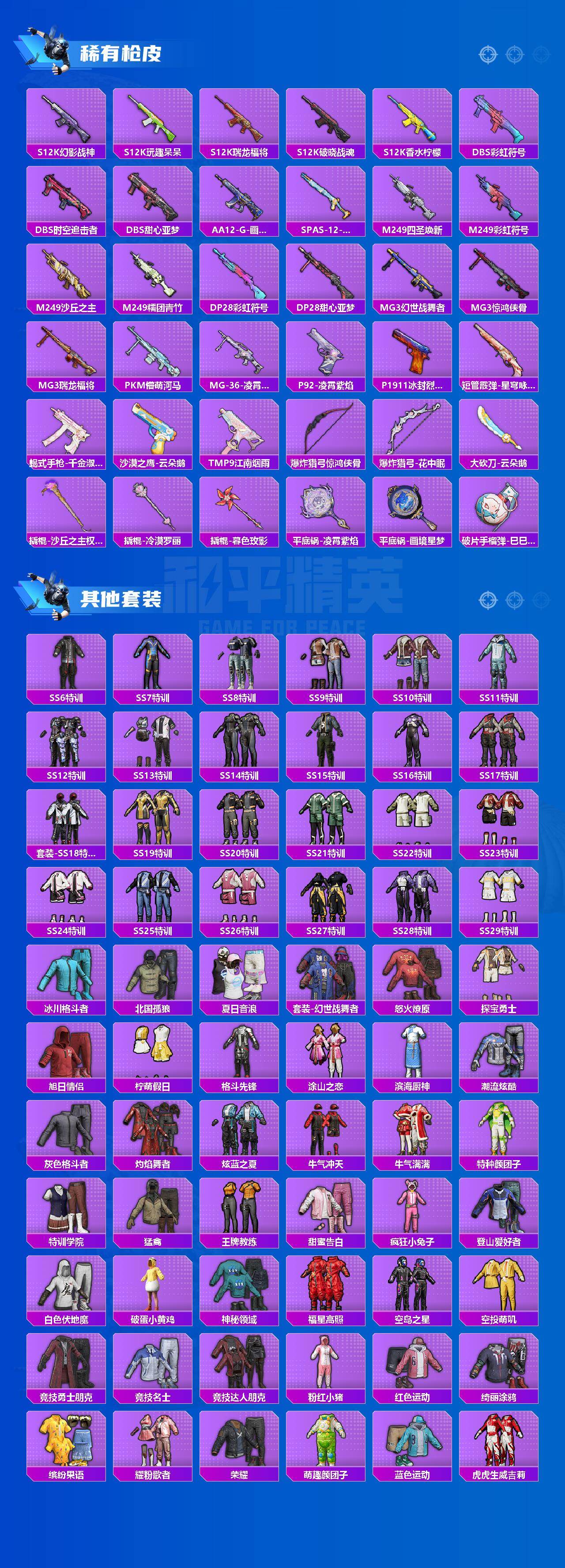 【粉色枪皮等级】:AKM-绿萝繁花(五级),AKM-暮色玫影(二级),M16A4-葫芦兄弟(七级),SCAR-L-锦绣绵绵(五级),M416-墨