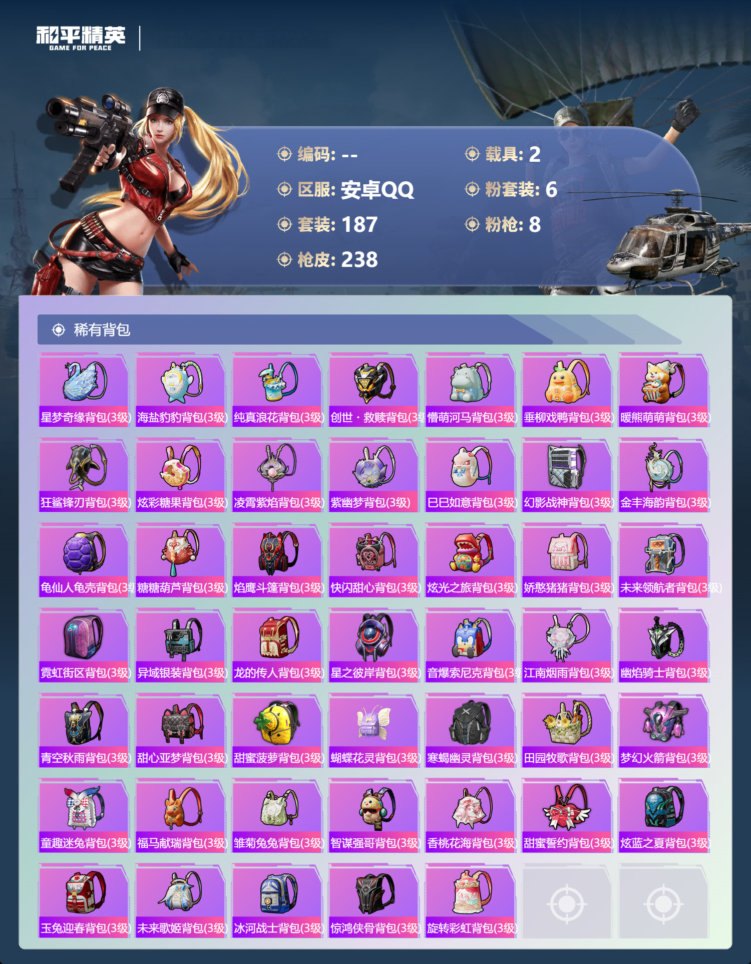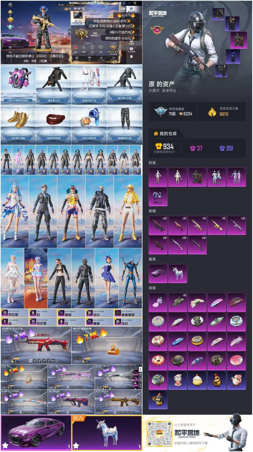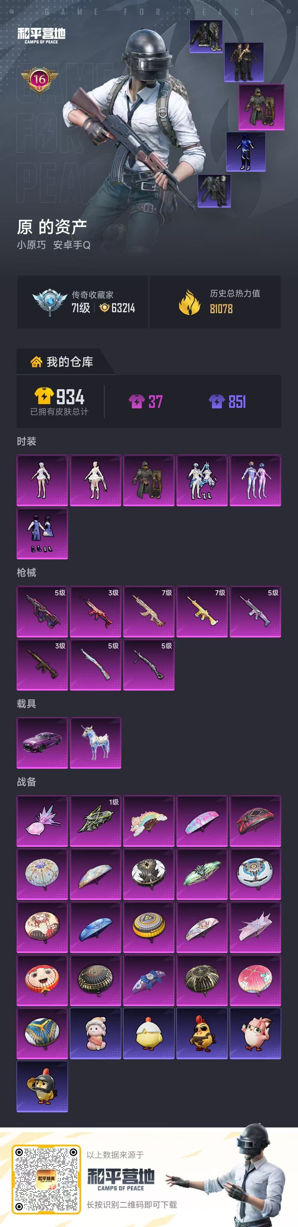 hs62975 安卓手Q-16王牌印记-6粉装-8特效枪-2载具-81078热力值-187套装-23
