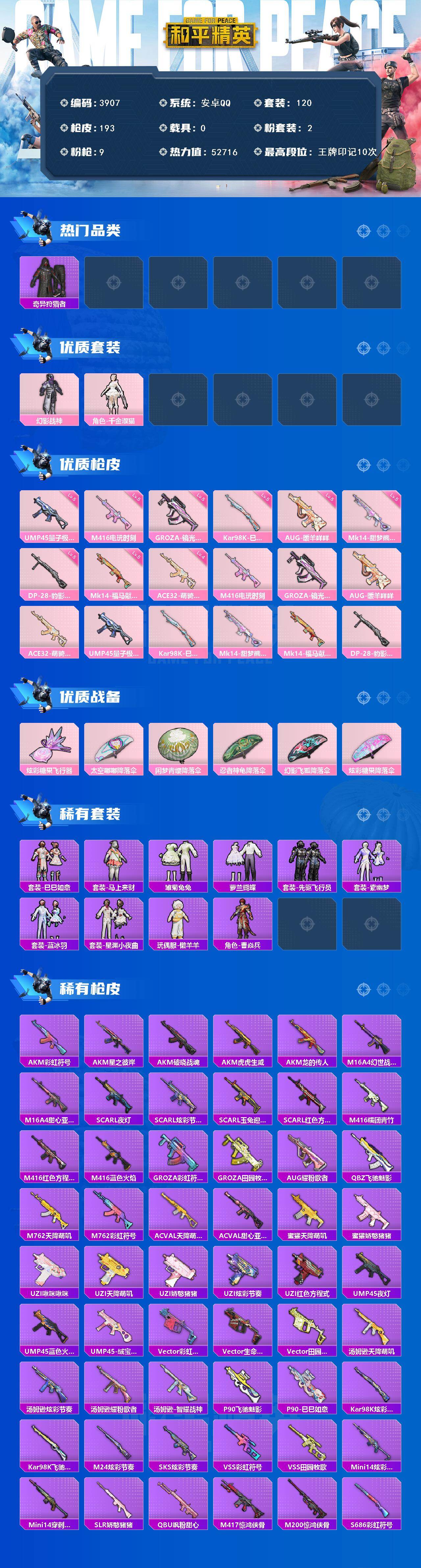 2粉装-9特效枪-0载具-1粉色飞行器-52716热力值-10王牌印记-120套装-193枪皮