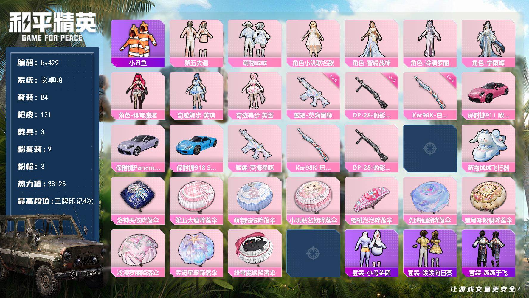 ]安卓 手Q-9粉装-3特效枪-3载具-3粉色飞行器-3812