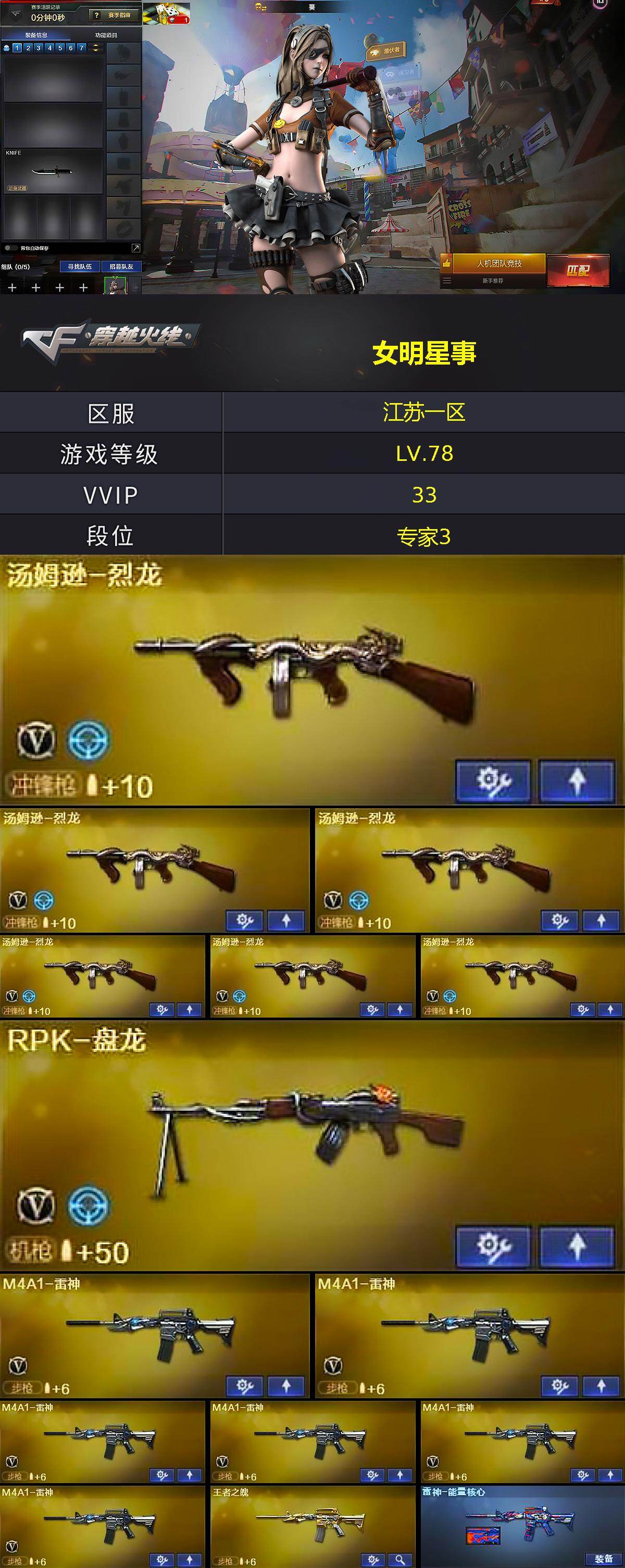 江苏一区-33V-13王者武器数-0炫金武器数【热门武器】:死亡之眼,M4