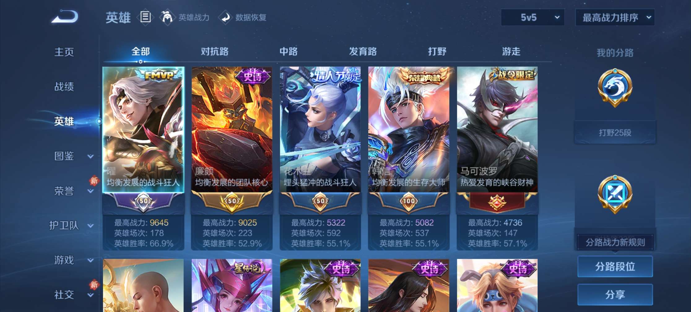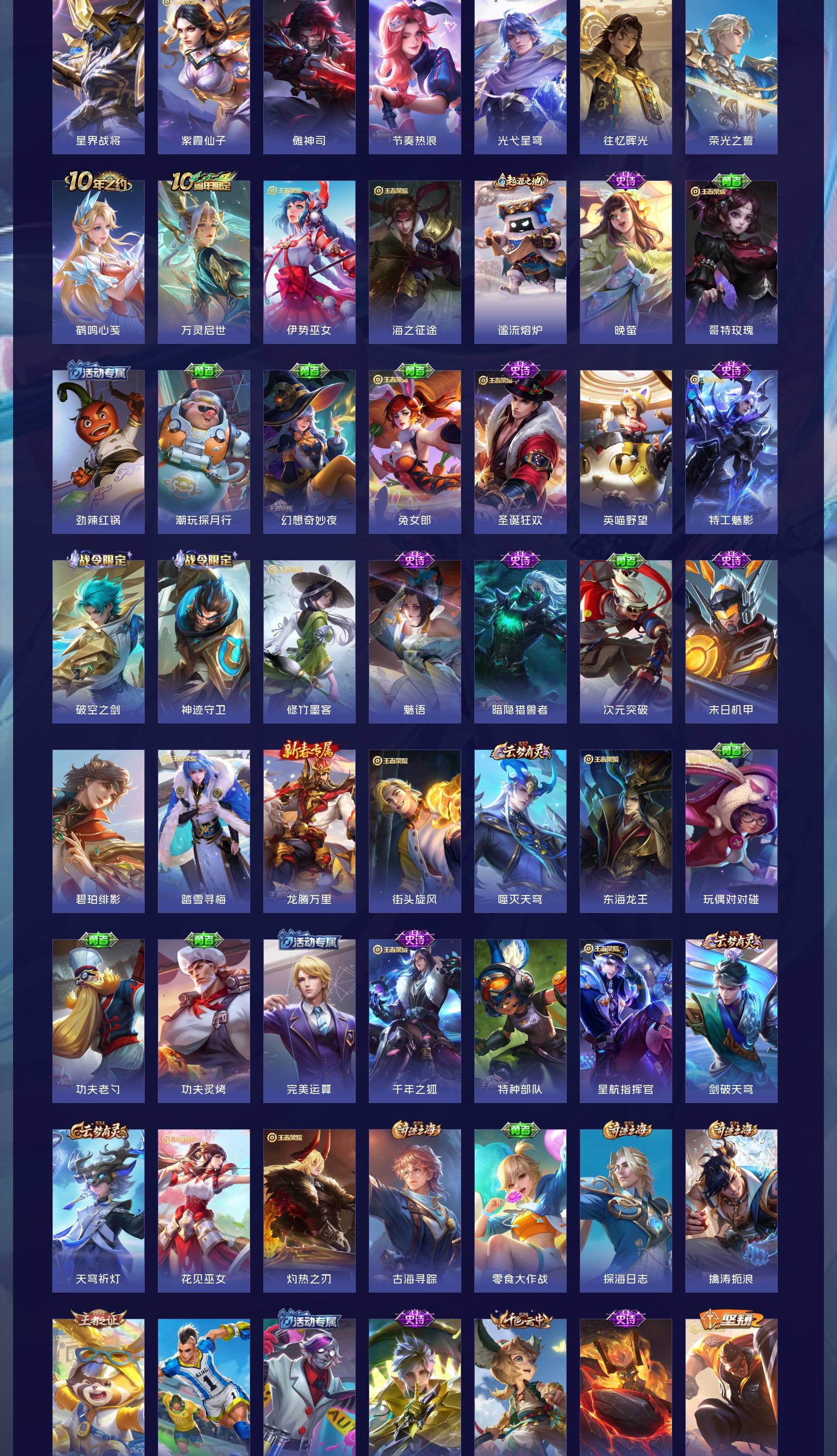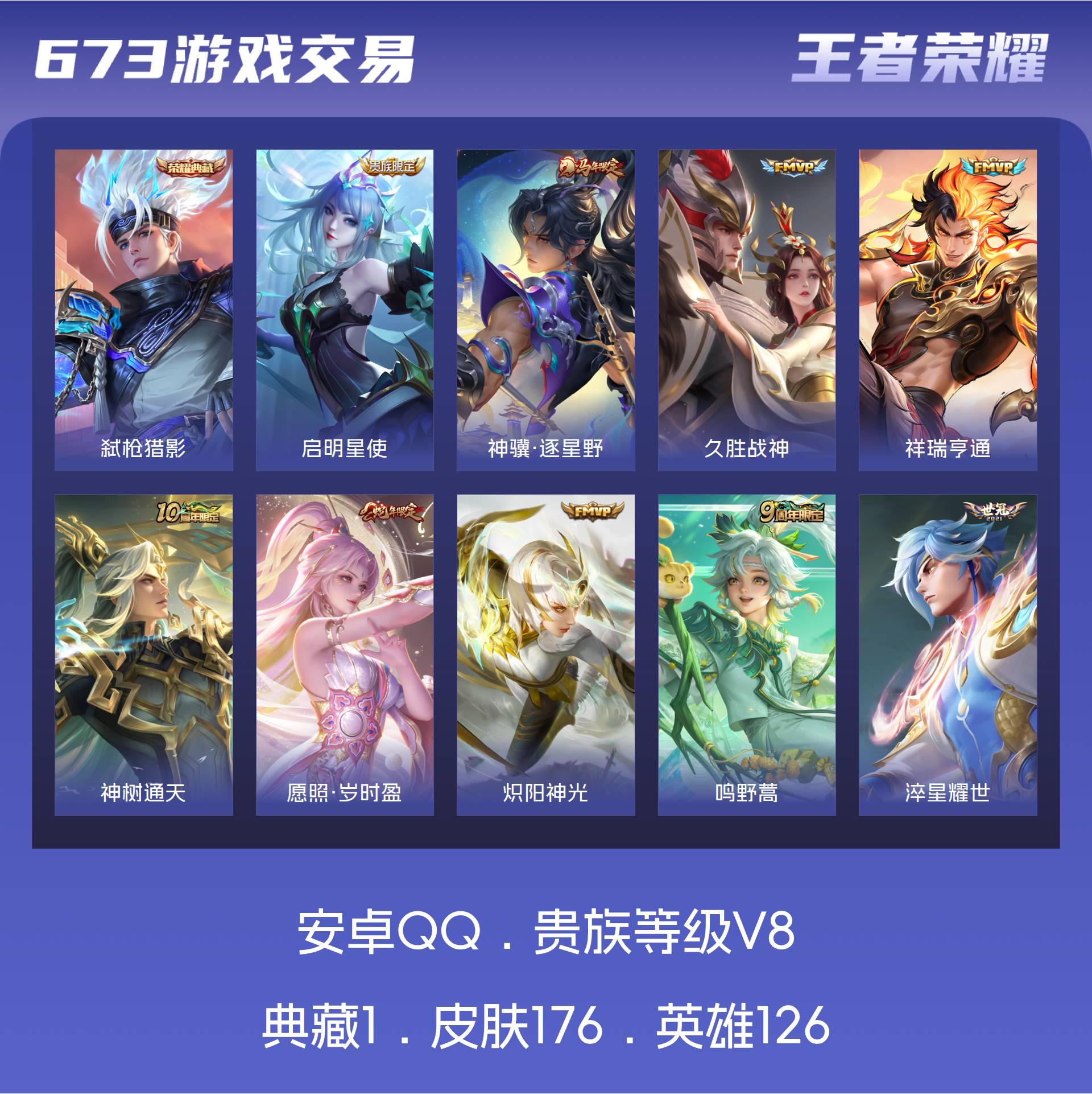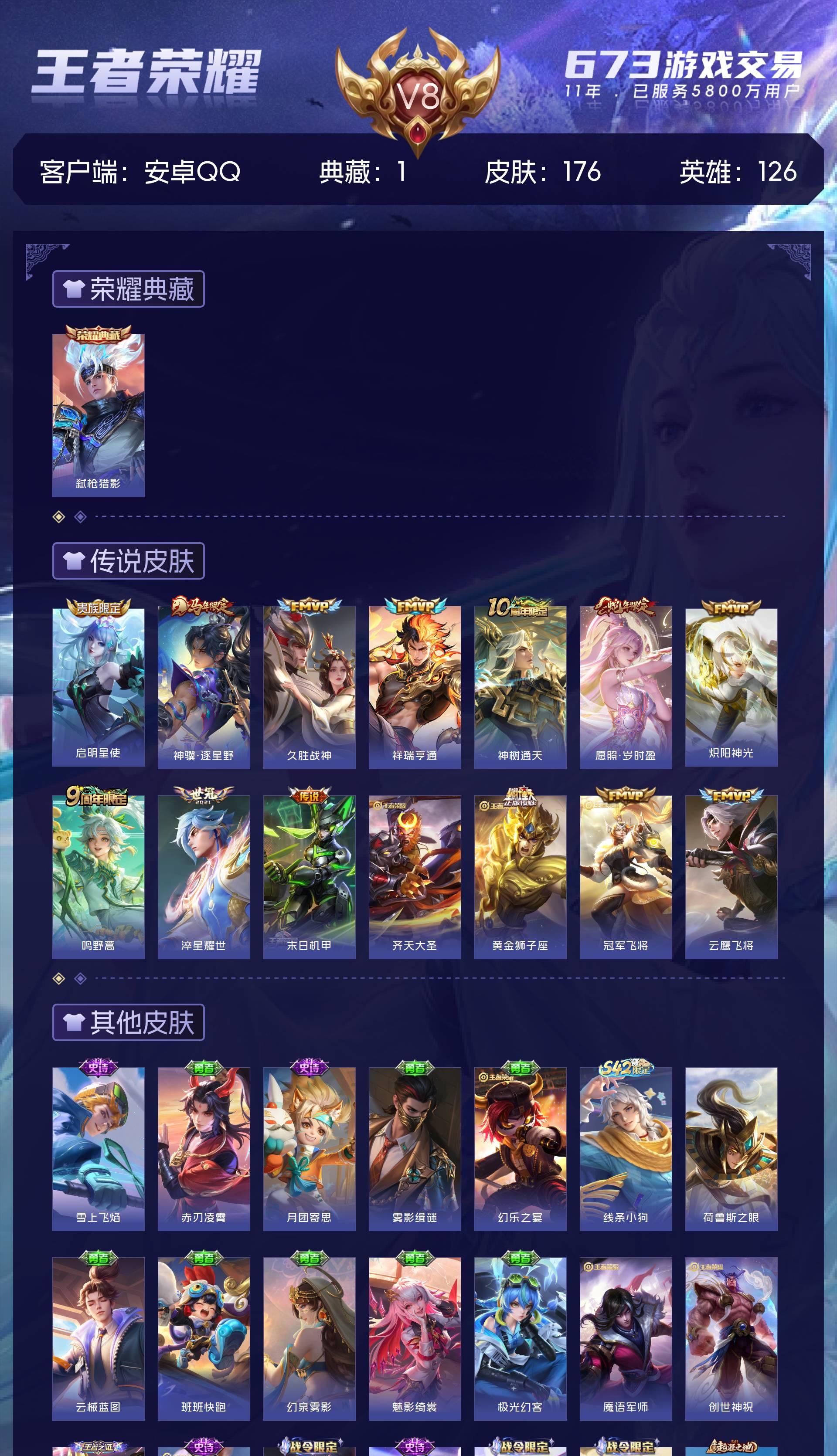 V8 皮肤176 英雄126 至尊星耀 荣耀典藏1 星传说1 传说14 其他皮肤168