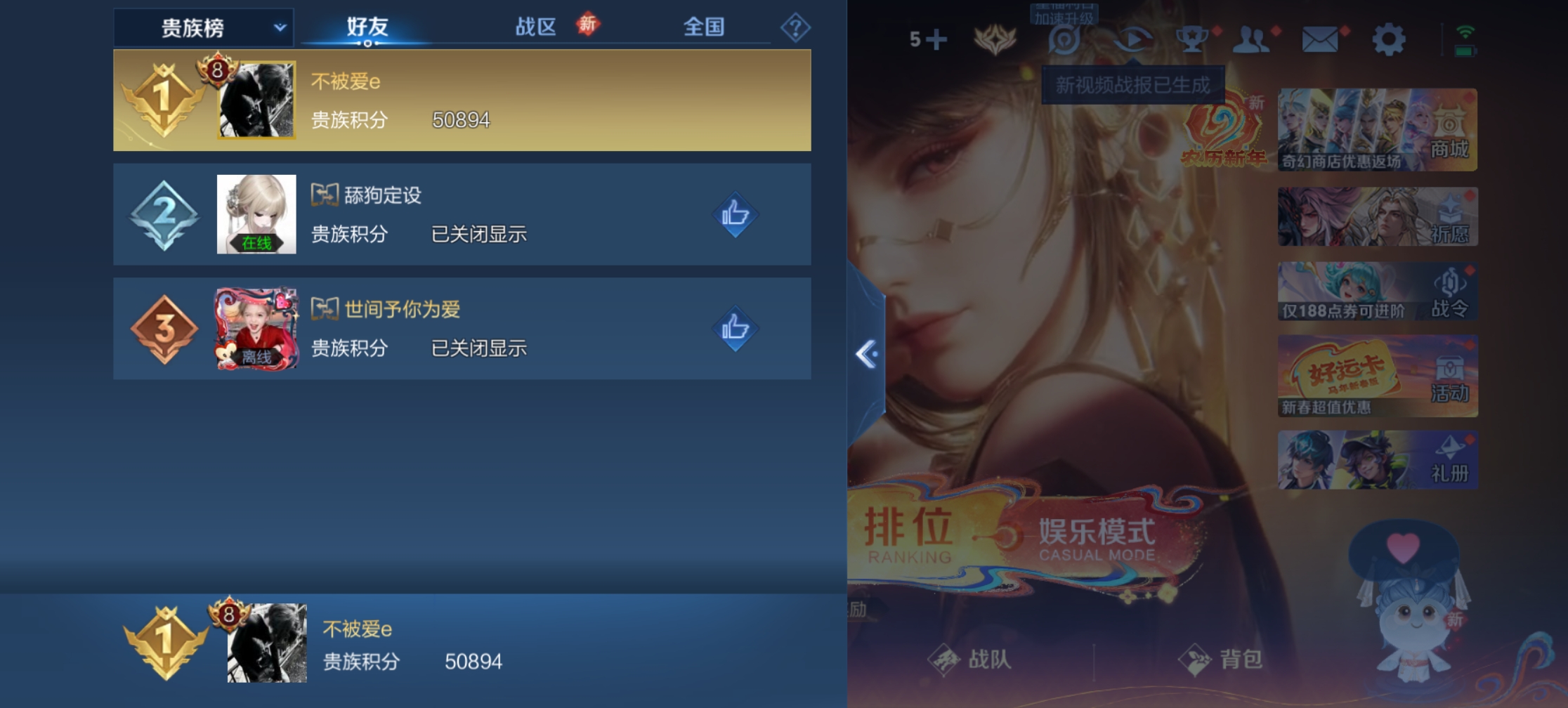 【王者荣耀】用户273*****e