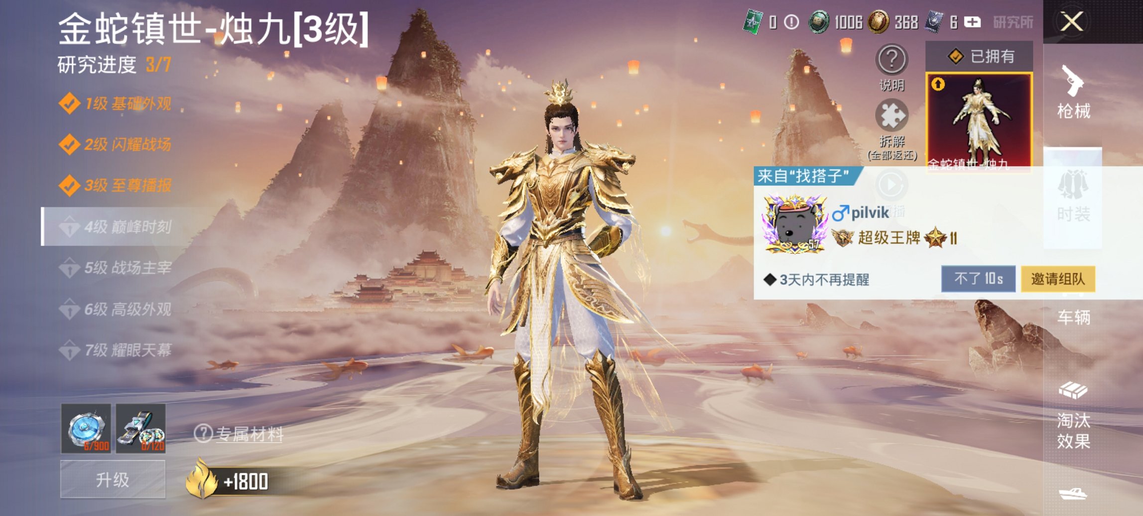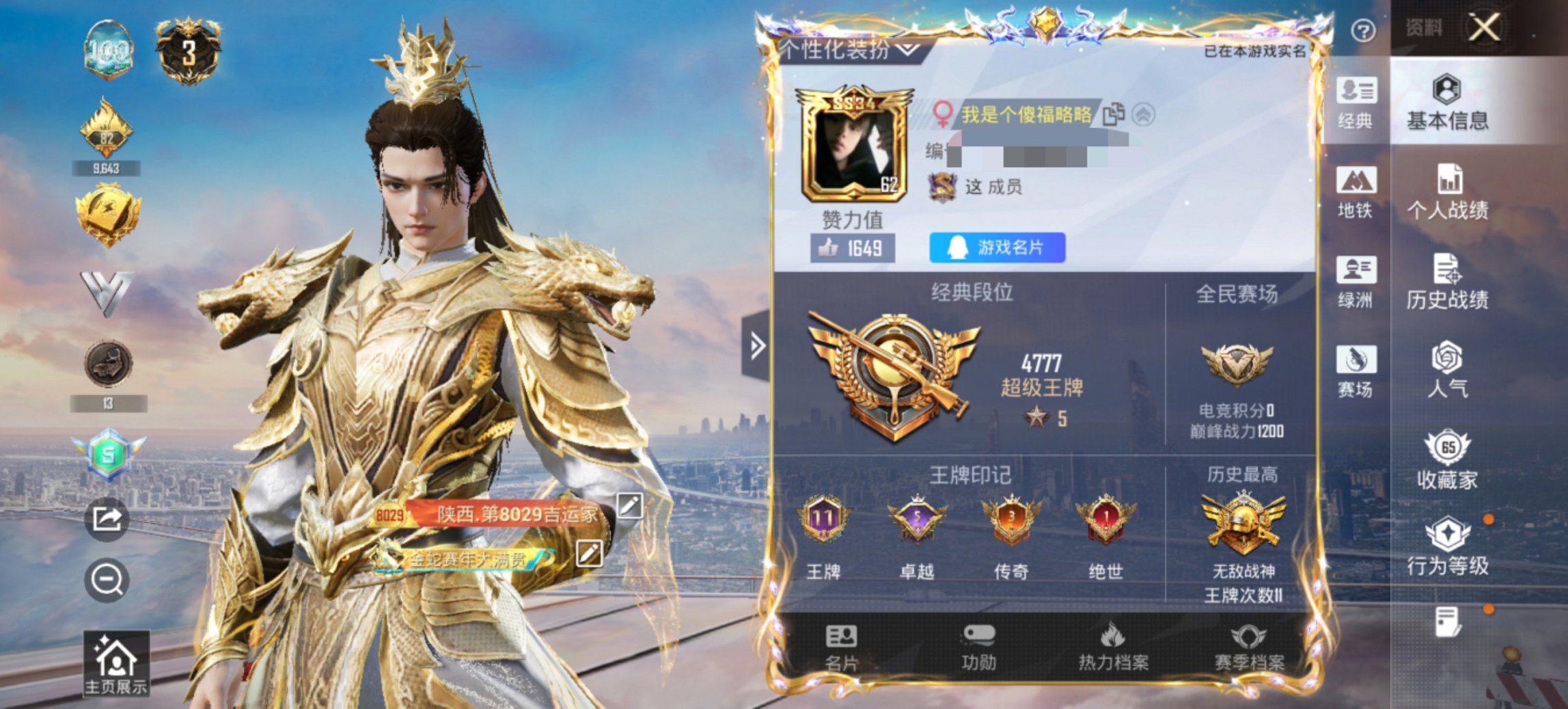 可二次实名【3级烛九战神框金鞋都市男神12特效枪4粉装身法素材号 秒换绑不用等】 安卓Q区-62187热力值-11印记-历史最高段位:无敌战神-157套装-205枪皮 【1红装】 金蛇镇世-烛九(3级)【3稀有】 都市猎人 派对舞王(金靴子) 派对舞王【4粉装】 绚金战神 蝶舞迷情 幻影战神 星穹咏叹调【12特效枪】 Mk14-福马献瑞(5级) UMP45-萌骑冒险(2级) SCAR-L-锦绣绵绵(5级) Vector-环太平洋(4级) Kar98K-巳巳如意(5级) M762-鬼刀(6级) M