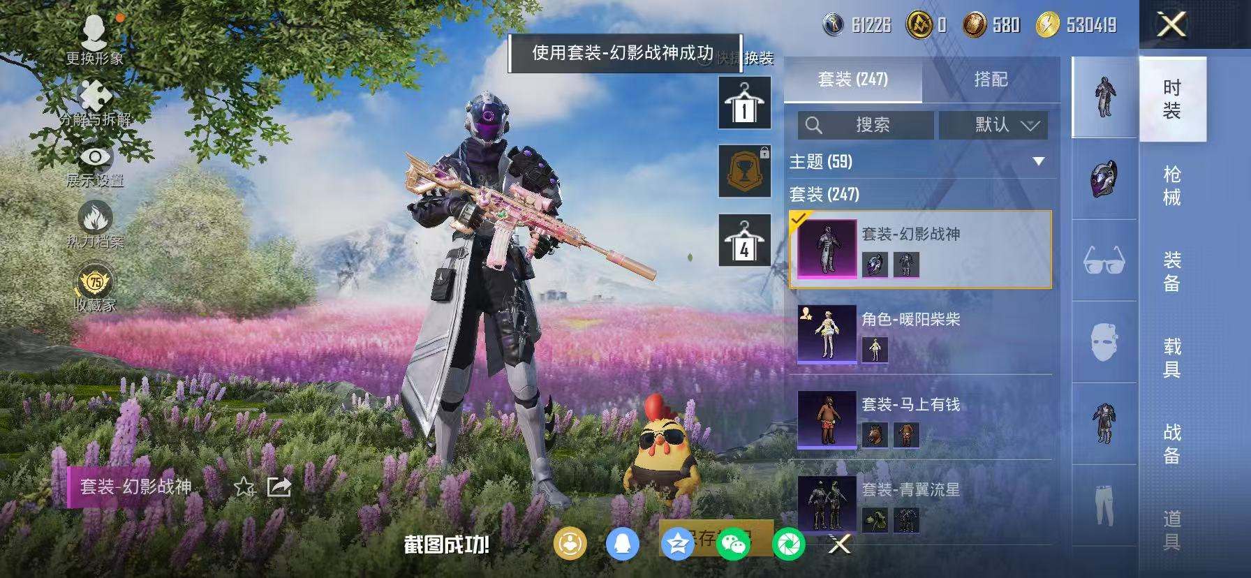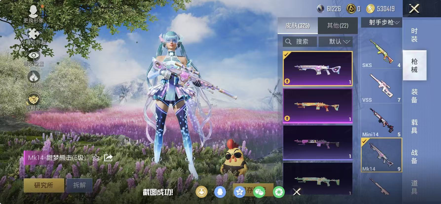 945-【都市红眼罩小丑鱼 5粉装10特效枪】 苹果V区-97003热力值-7印记-247套装-325枪皮 【1稀有】 AWM-黄金龙骨【5粉装】 圣堂之誓 草莓生巧 深渊皇后 幻影战神 幻彩电音【10特效枪】 SKS-碧影闪光(7级) M416-心之恋语(7级) Mk14-福马献瑞(5级) AKS-74U-森灵之息(5级) ACE32-萌骑漫游(5级) M249-绝对恒星(7级) Mk14-甜梦熊击(5级) GROZA-镜光银凌(5级) Kar98K-巳巳如意(5级) DP-28-豹影疾电(5