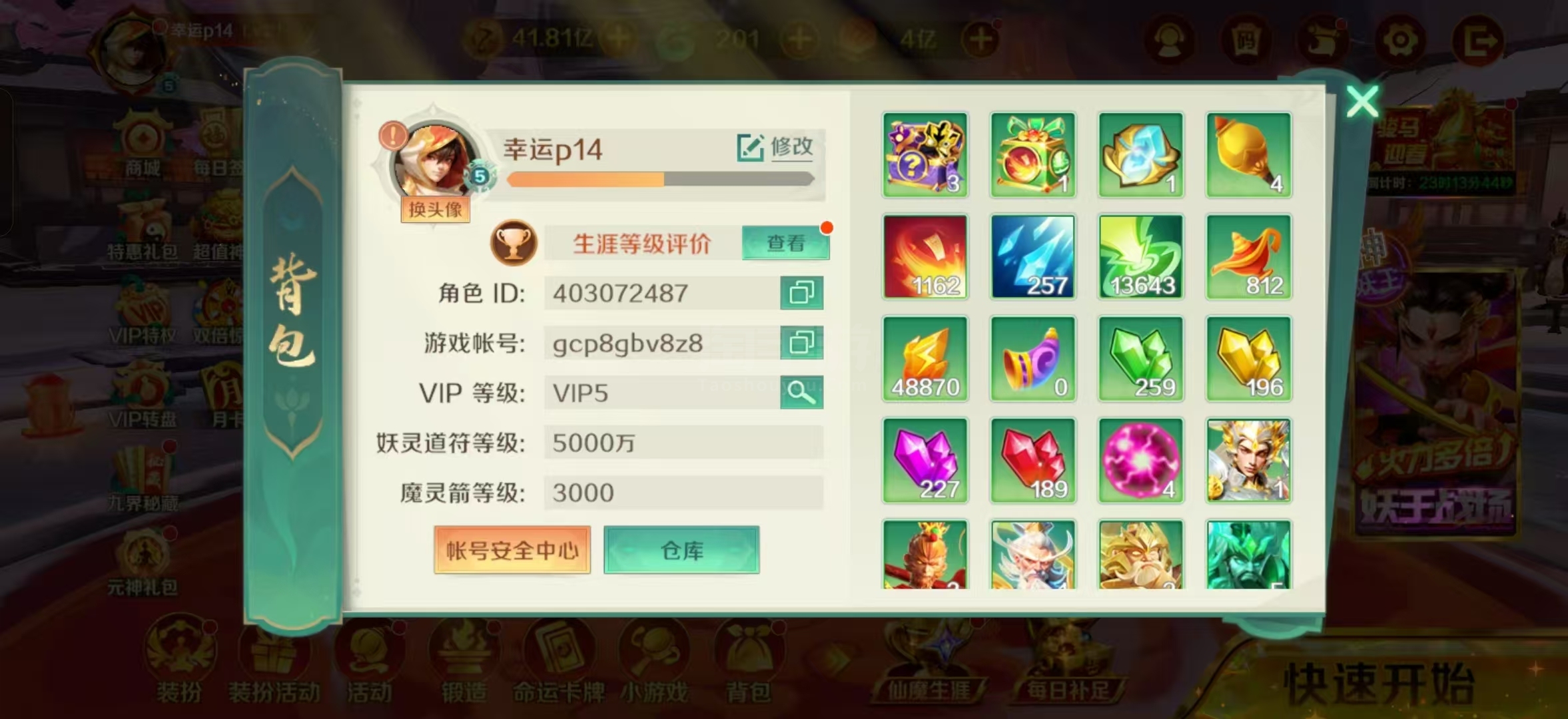 4亿魔灵+1白金 3000机械 超满小五