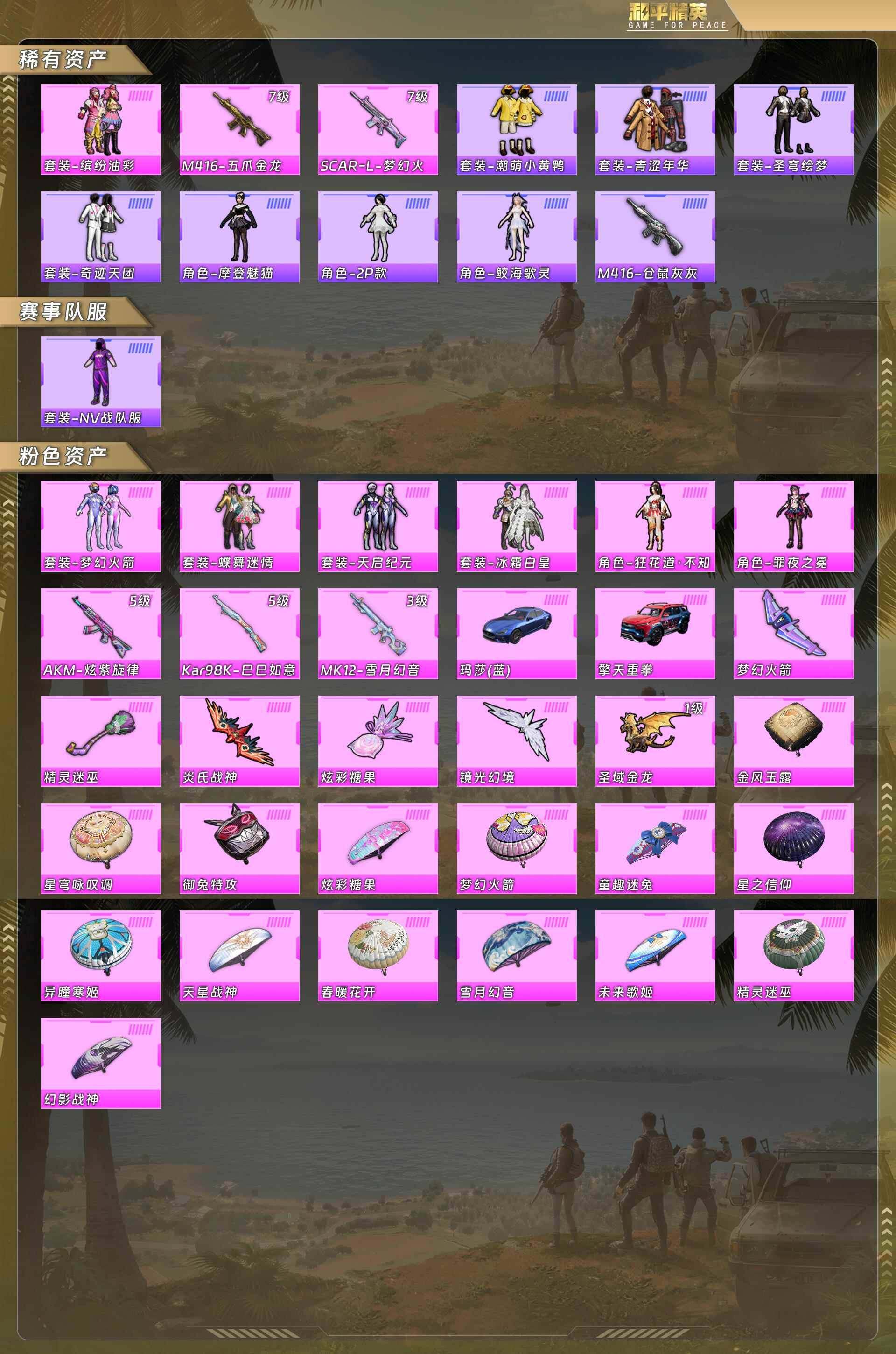 公主号-地铁马上满天赋-缤纷油彩/M4五爪金龙7级/SCAR梦幻火箭7级/潮萌小黄鸭/青涩年华/圣穹绘梦/奇迹天团/摩登魅猫/2P战斗服款/鲛海歌灵/M4仓鼠灰灰/NV战队服/梦幻火箭/蝶舞迷情/天启纪元/冰霜白皇/狂花道不知火舞/罪夜之冕/AK炫紫旋律5级/MK12雪月幻音3级/玛莎拉蒂(蓝)/擎天重拳 (7粉装5粉枪2载具)没战神框 HP6326-6粉色飞行器-58061热力值-5王牌印记-123套装-162枪皮
