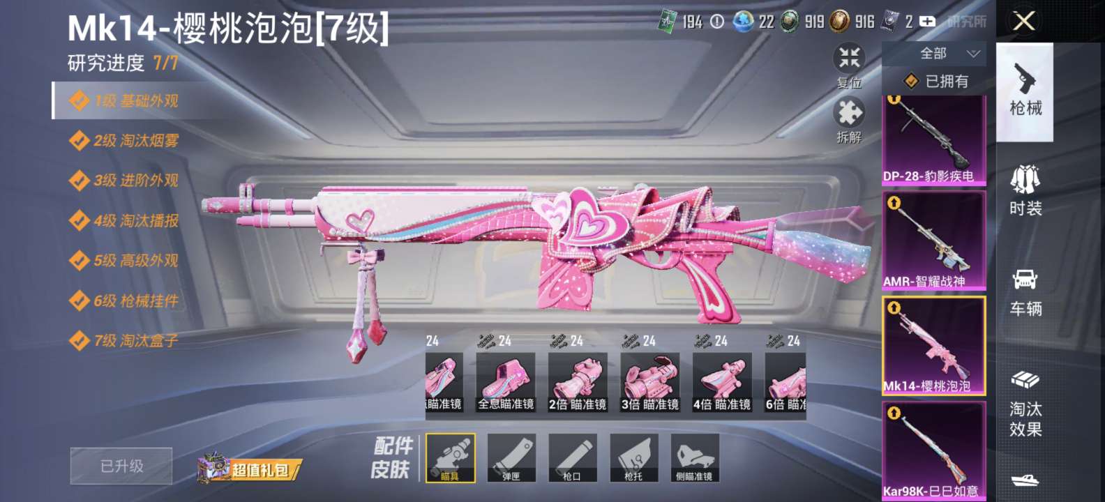微信小号,只绑定了手机号,樱桃泡泡全套,一套粉装,五把升级枪,其他看图