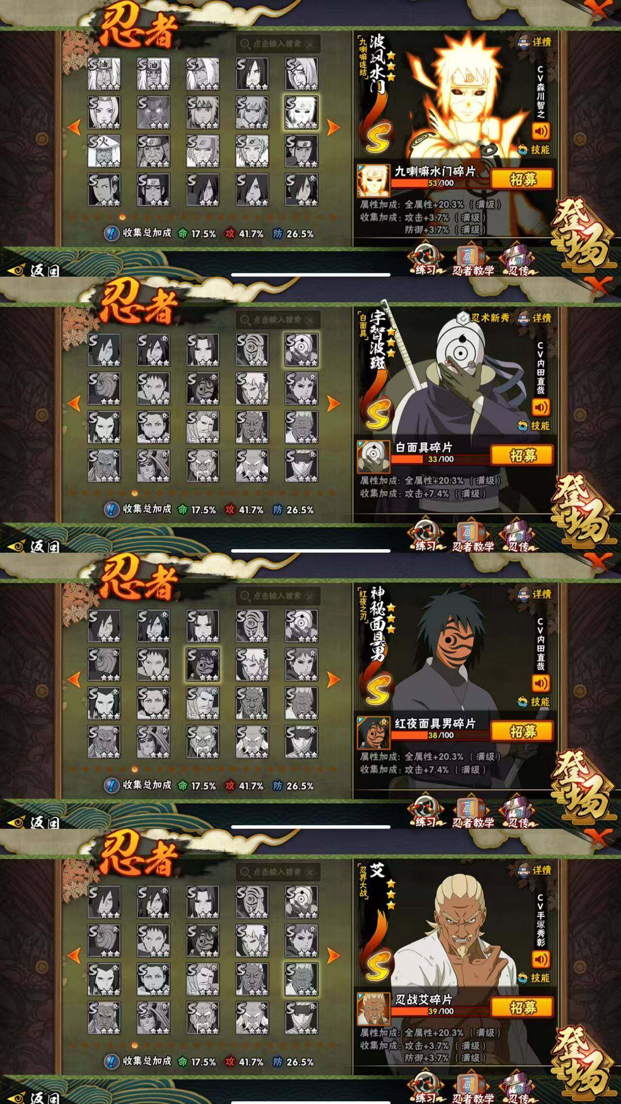 p95,贵10,110万战,6s忍15a忍,暴怒带土十周年鸣须佐卡卡西须佐鼬须佐止水秽土再不斩疾风我爱罗