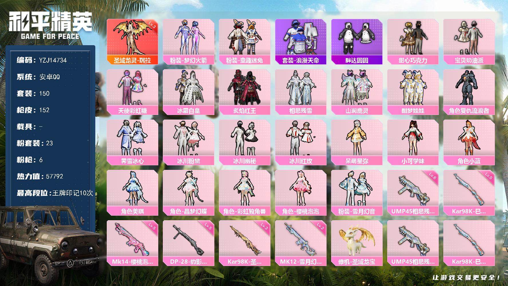 2439282_实名可改-安卓Q-1红装1稀有23粉装6特效枪11热门【极品神装素材女号中级巡查员3级神装龙妈-瑞拉巧克力三姐妹冰川三姐妹火箭少女童趣迷兔小可呆萌小蓝美琪樱桃泡泡晶梦幻蝶胖达圆圆晶辉守护粉团憨憨糖霜甜心蜜桃派对狂沙天命童趣迷兔头盔圣域金龙背包2级圣域金龙飞行器5款飞行器四级包嘟嘟-伙伴小拳击手-+伙伴3张改名卡】150套装152枪皮57792热力值10印记历史传奇王牌1星【1红装】