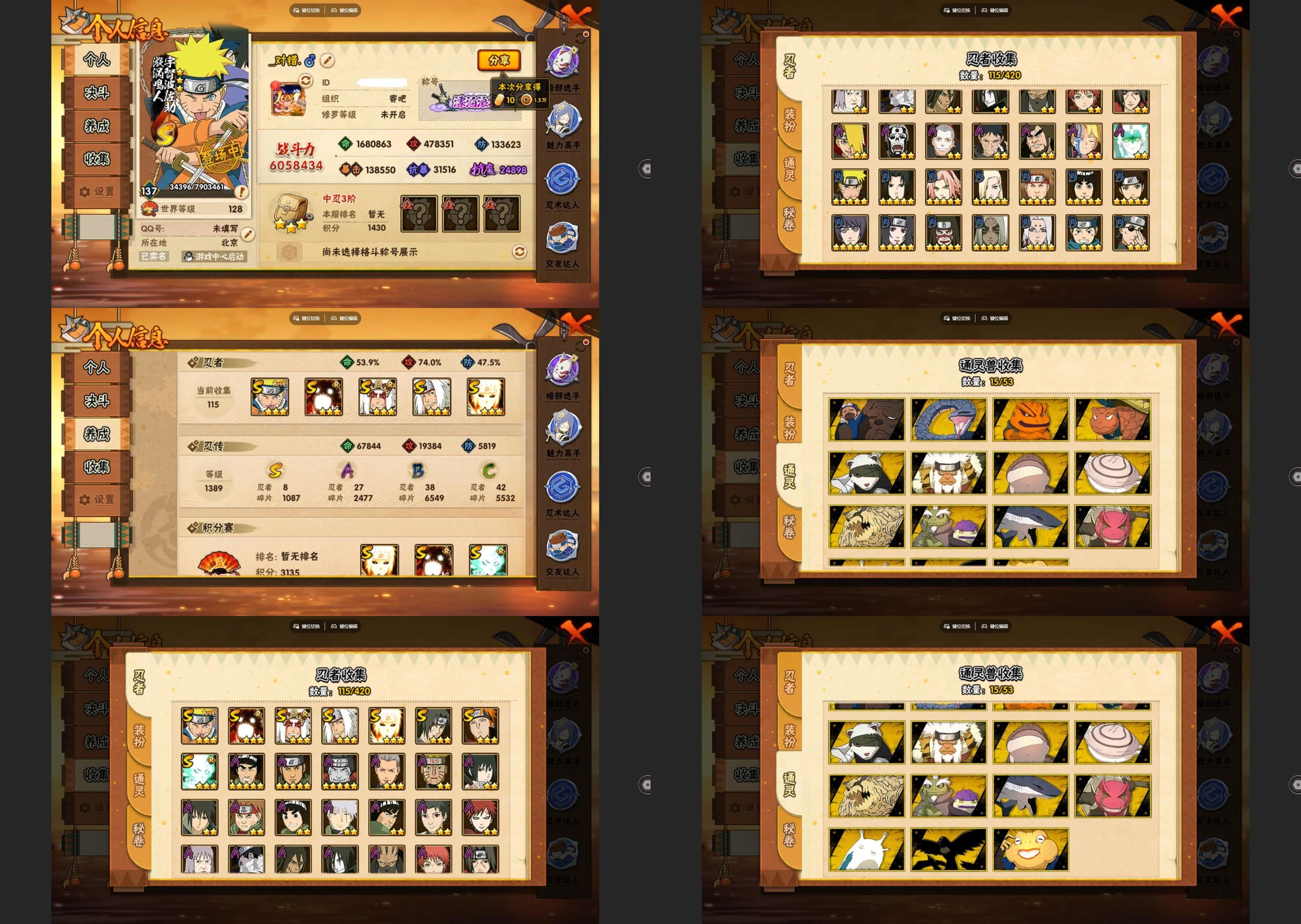 【S忍者】宇智波佐助「漩涡鸣人」,自来也「舞之豪杰」,大筒木舍人「最终章」,自来也「传说中的三忍」,漩涡鸣人「暴怒·第六尾」,宇智波鼬「须佐能乎」,佩恩「天道」,波风水门「九喇嘛连结」,