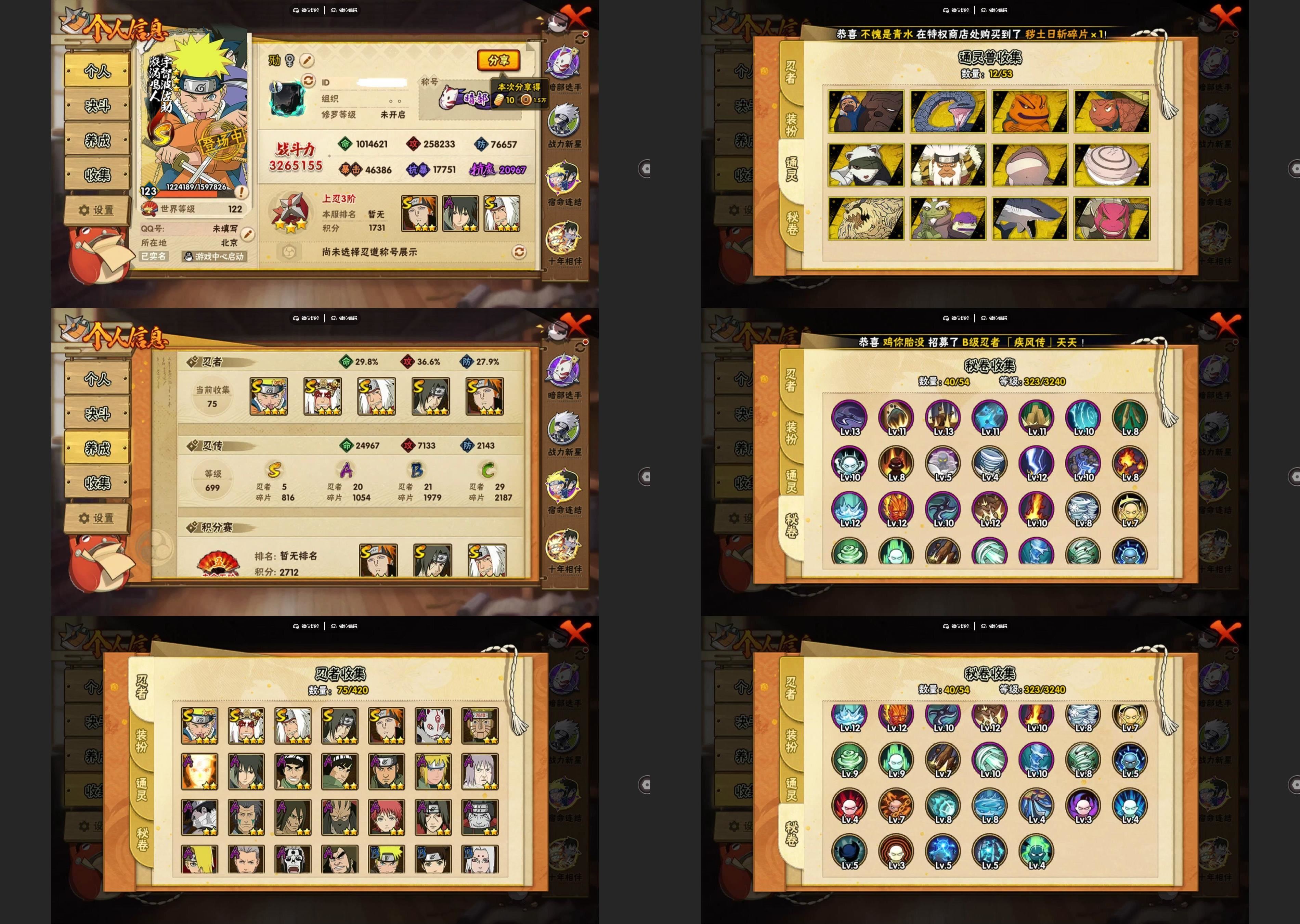 5S忍/20A忍/战力326W/V5/区服4287 【S忍者】宇智波佐助「漩涡鸣人」,自来也「舞之豪杰」