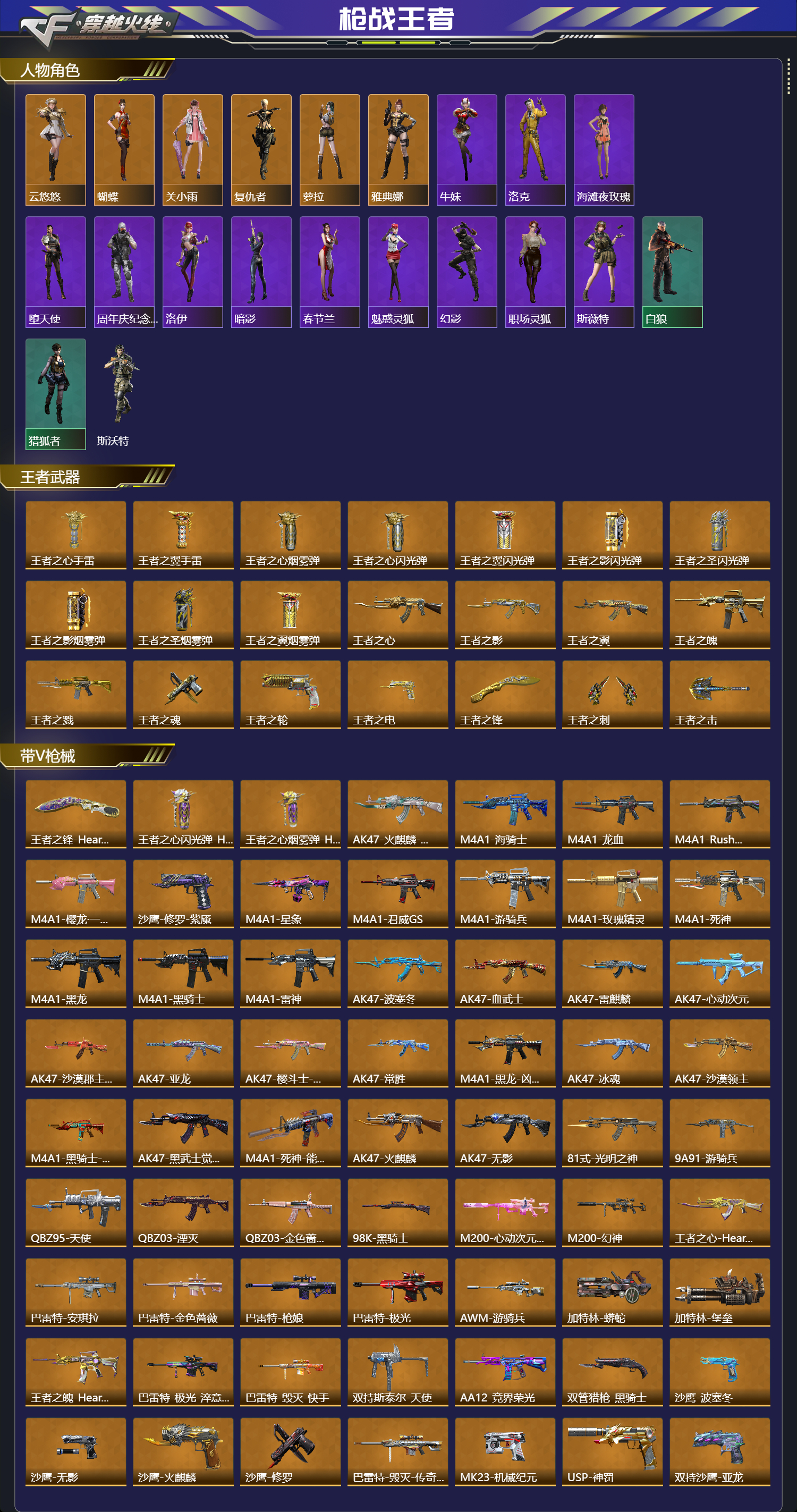 【人物角色】雨墨,牛妹,洛克,云悠悠,蝴蝶,关小雨,海滩夜玫瑰,潜龙队,香香,堕天使,周年庆纪念赛斯,复仇者,洛伊,萝拉,暗影,春节兰,魅惑灵狐,白狼,幻影,猎狐者,斯沃特,雅典娜,
