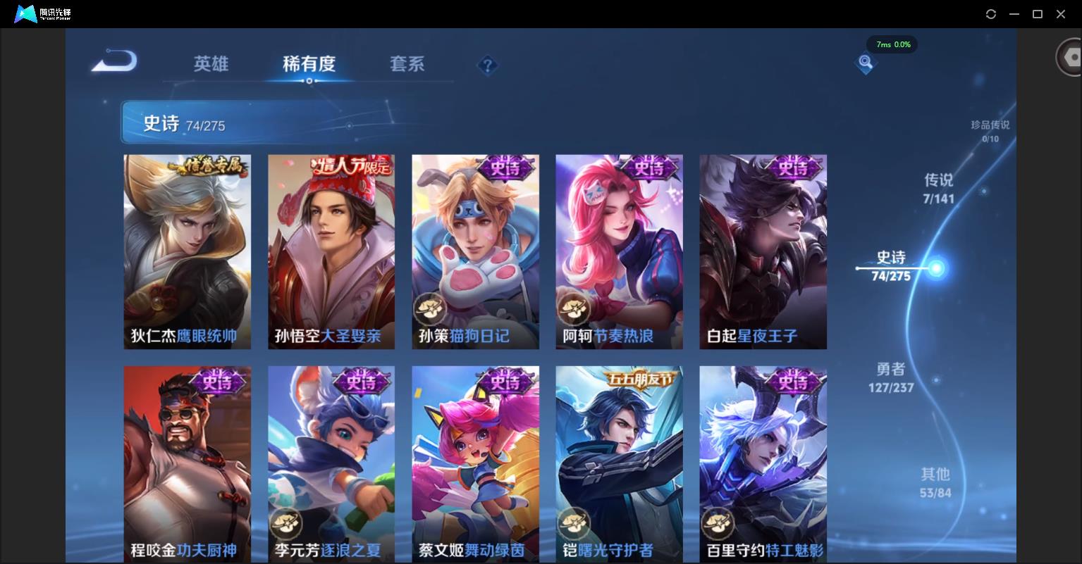 包脸-V7-263皮肤-1典藏-1无双-1星元-7传说-74史诗-5个性按键-63夺宝积分