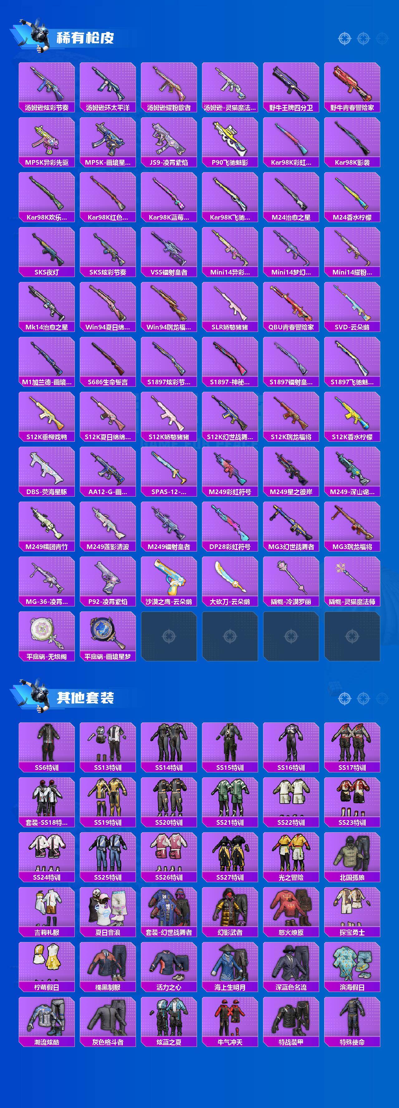3粉装-2特效枪-3载具-2粉色飞行器-54225热力值-9王牌印记-124套装-165枪皮