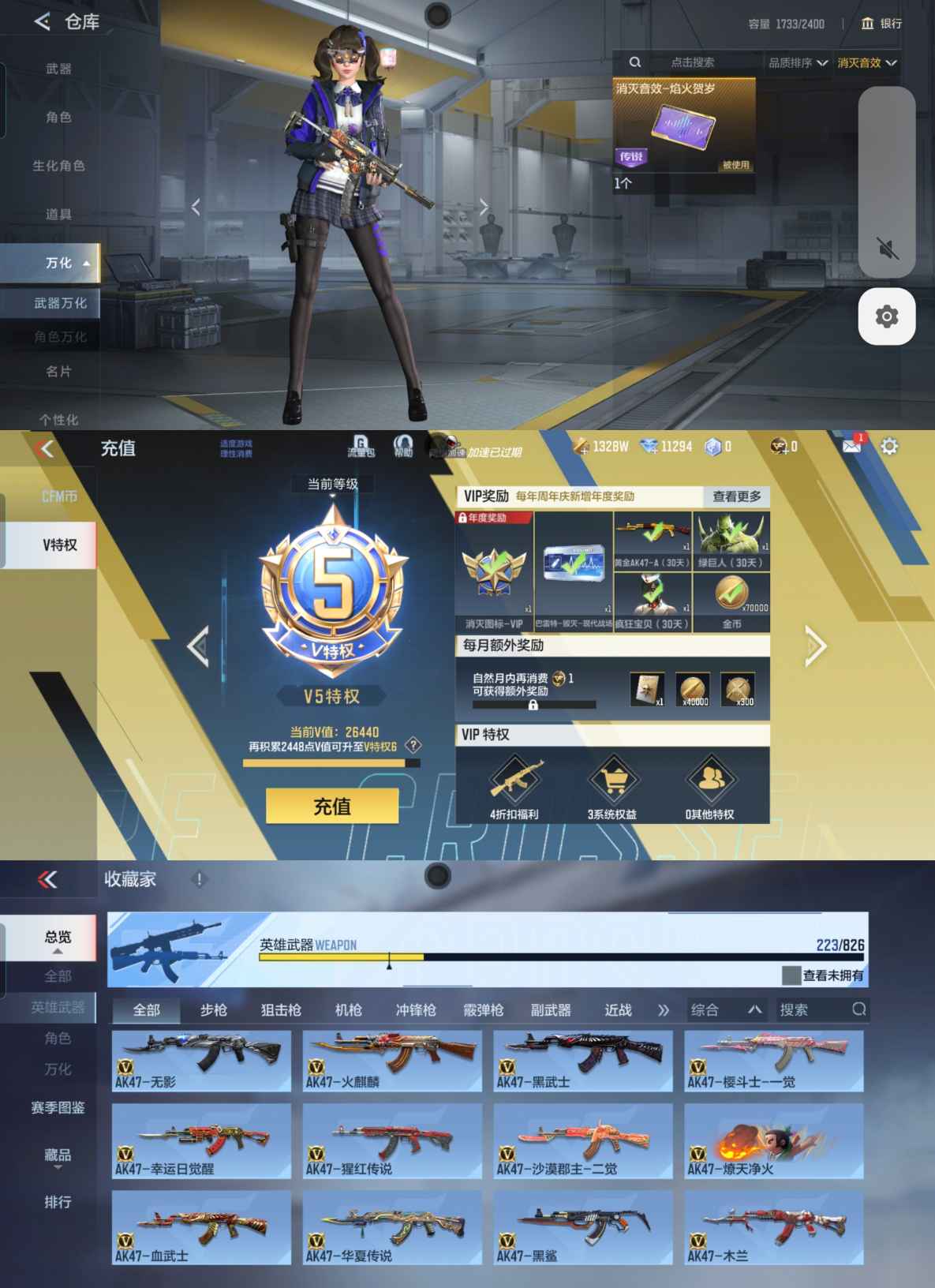 TZ2897【V5 328V 王神冰皮 王蝶 M200-幻神】【等级】114【区服】手Q-安卓【金角色数】9【金武器数】328【金V角色】炽天使-X 零 零-新生 幽灵刀锋-觉醒 宋雨琦 九安-X 关小雨 职场灵狐-赛事经理 葵 复仇者 复仇者【金V武器】血阳 5-极光 巴雷特-极光 加特林-蟒蛇 AK47-华夏传说 M4A1-心动次元 98K-黑骑士 GLOCK18-宙斯 马来剑-毁灭 AK47-血武士 M4A1-心动次元觉醒 神罚战斧 M4A1-运输船 M4A1-龙血 刘易斯-血月 09式