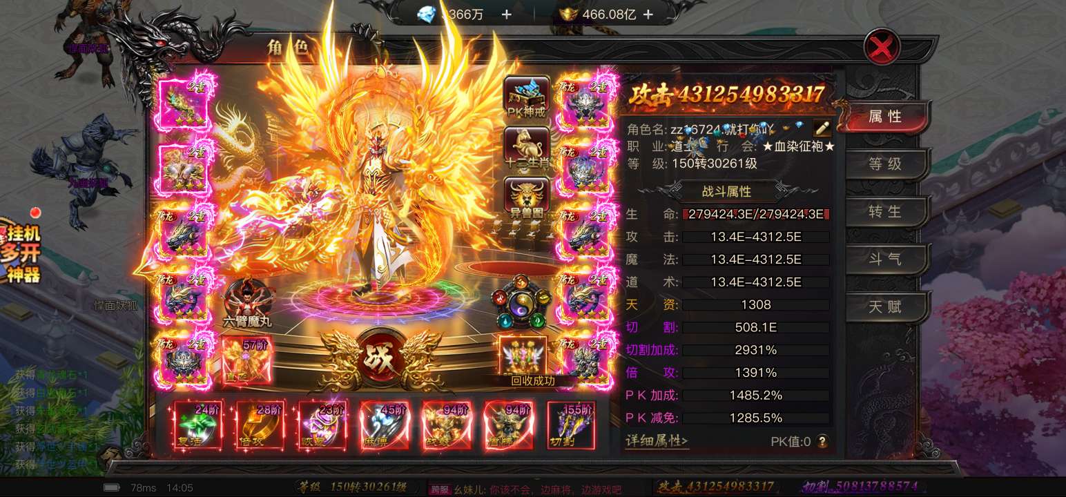 征战83天新区,充8万2,4300亿战力城主霸主道士,8跨第一,特权都买了,断层领先,到手爽玩