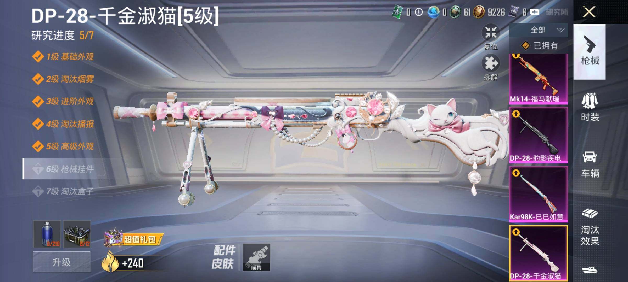 99套装/枪械5/装备135/战备78/王牌印记6/热力值33