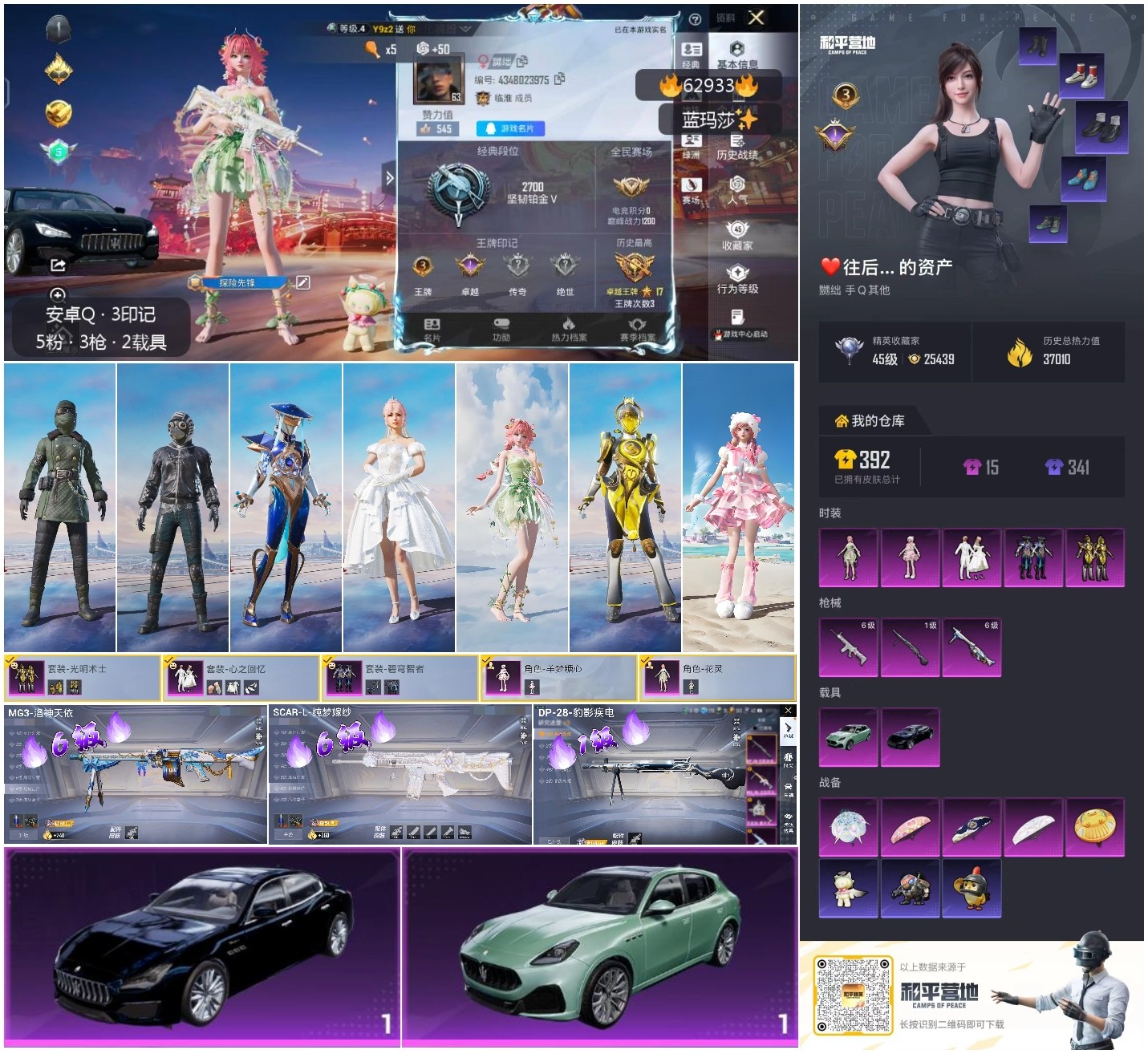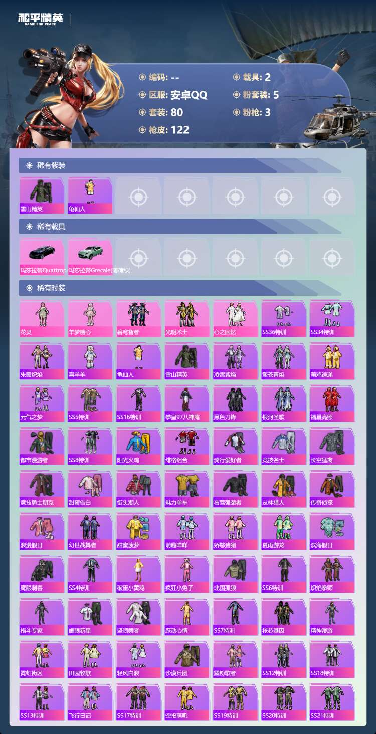 hs62933 安卓手Q-3王牌印记-5粉装-3特效枪-2载具-37016热力值-80套装-122枪