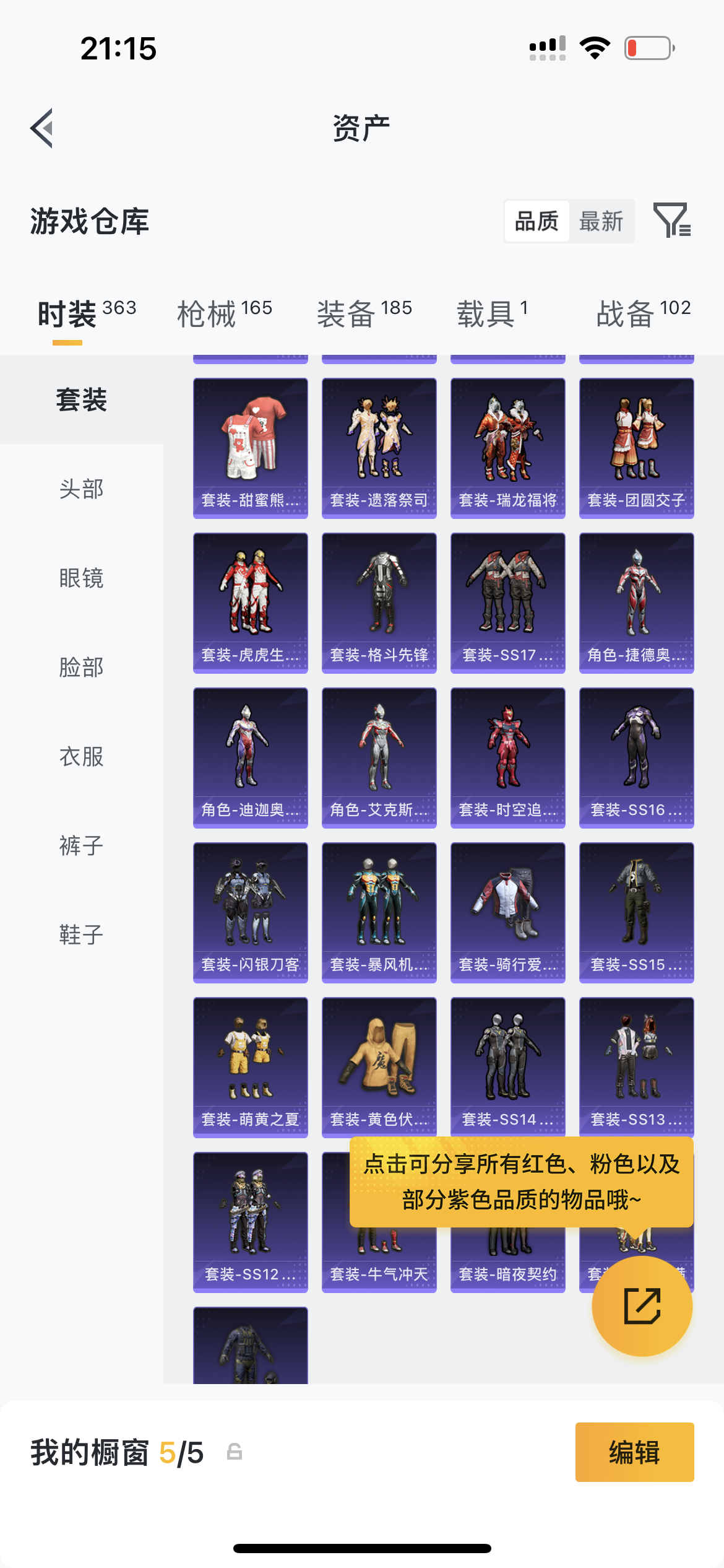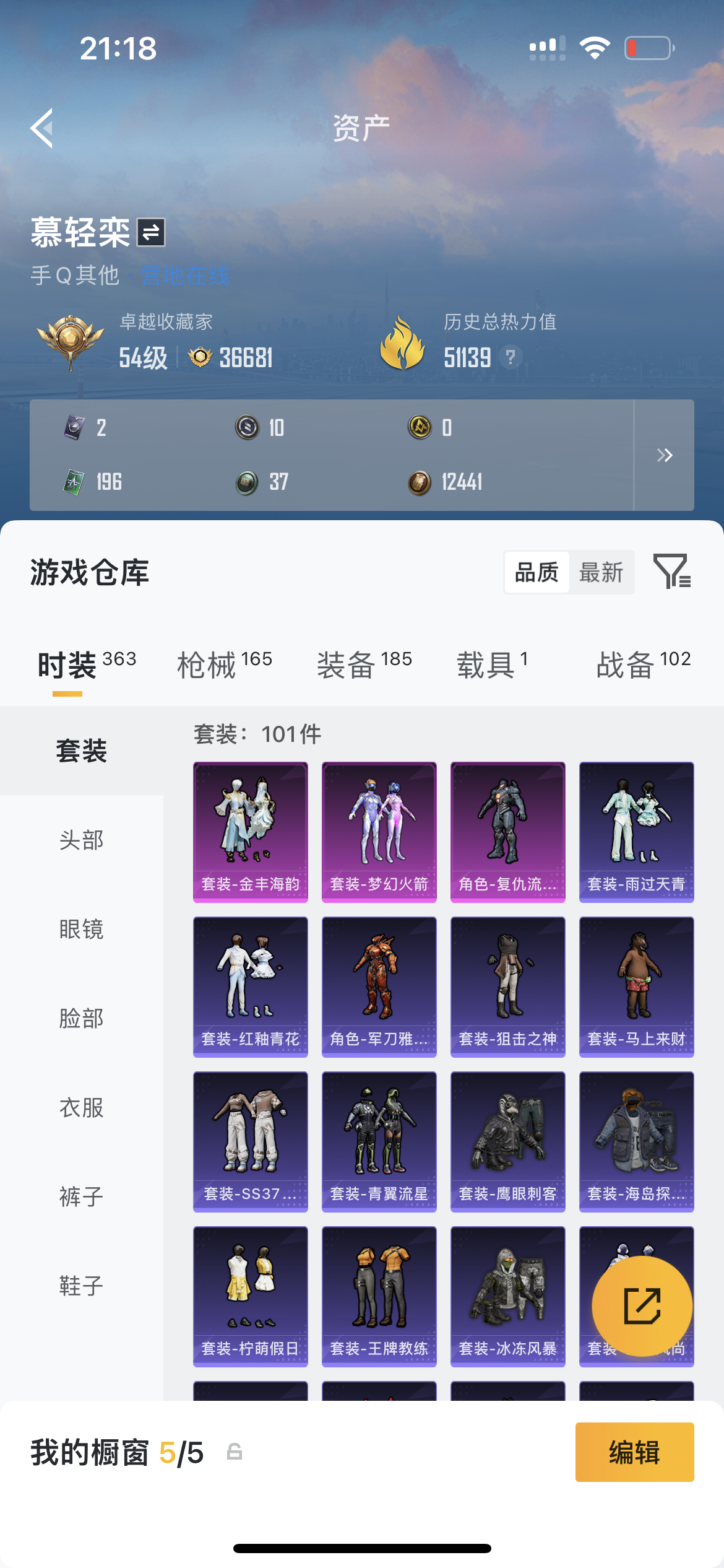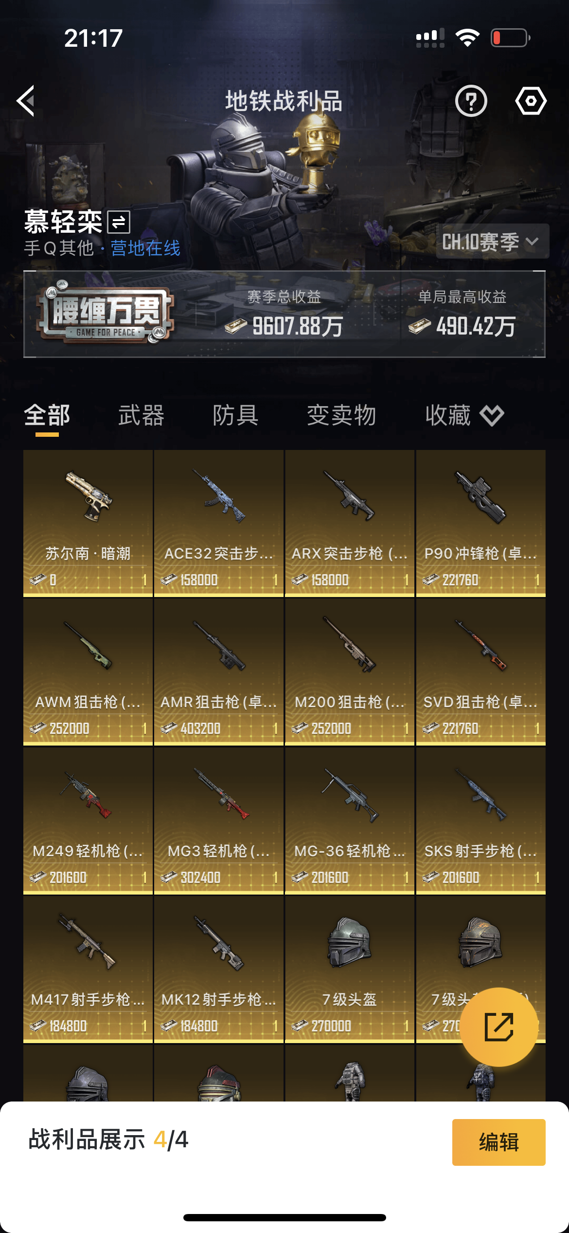 有一辆车皮,很多优质紫皮,2粉飞行器,360套时装,163枪械皮肤,182个头盔背包皮肤,有梦幻火箭,三粉套,六满级特效枪,一钻石无瑕苏尔南暗潮传世手枪满级豪华手册,豪华特权卡