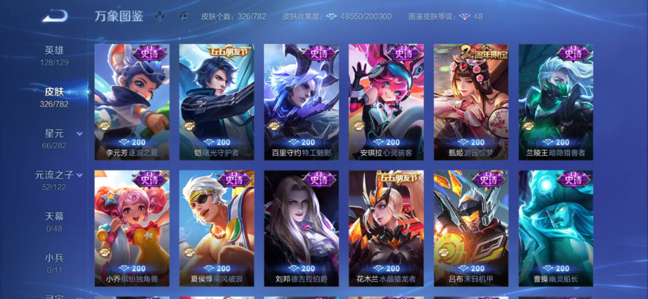128英雄-326皮肤-苹果QQ/账号亮点/发育路41段/