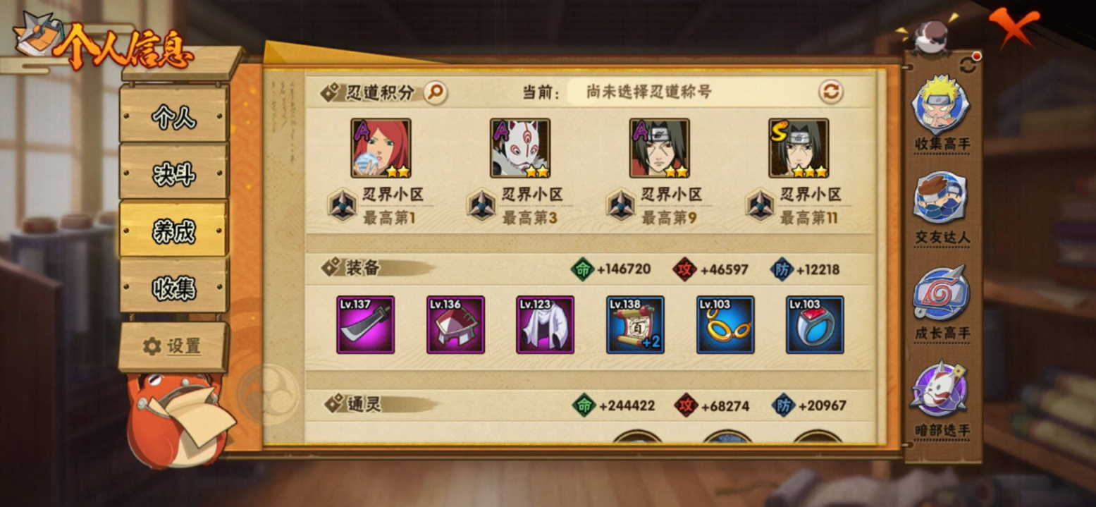苹果QQ-可以二次-v7-495w战力成品小号.入坑首选-千手扉间「秽土转生」-漩涡鸣人「九喇嘛连结」-宇智波佐助「永恒万花筒」-神秘面具男「忍者之路」-小南「神驹佑将」-卑留呼「火之意志继承者」-S忍者数:10- A忍者数:24