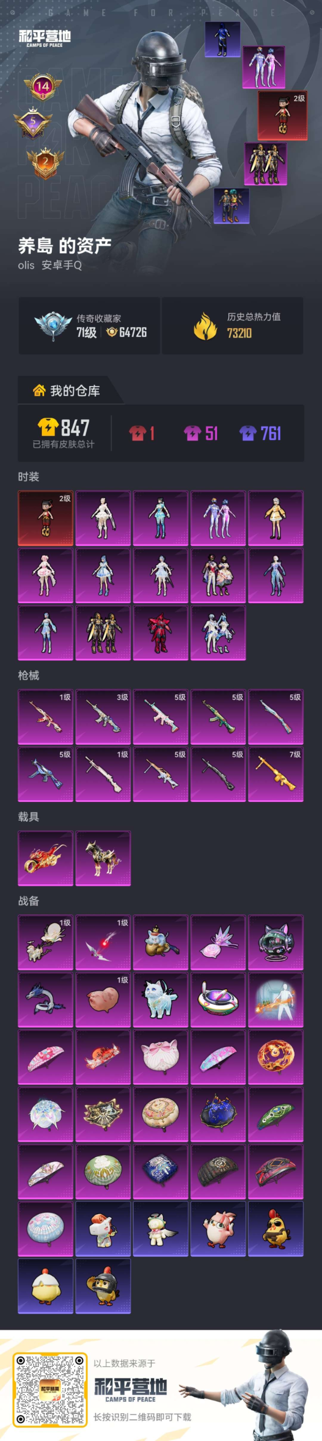 2载具-159套装-214枪皮-1红装2稀有2载具13粉装10特效枪12热门15