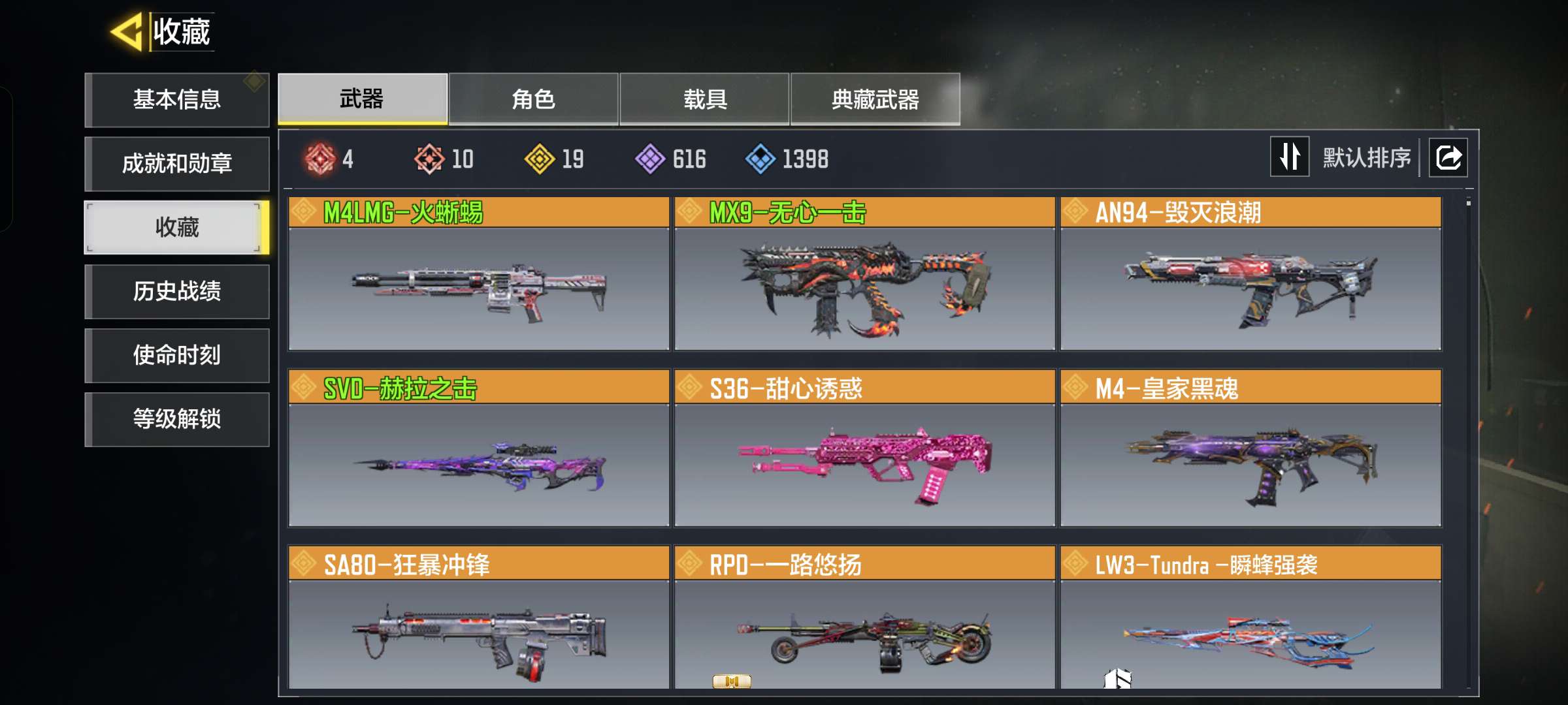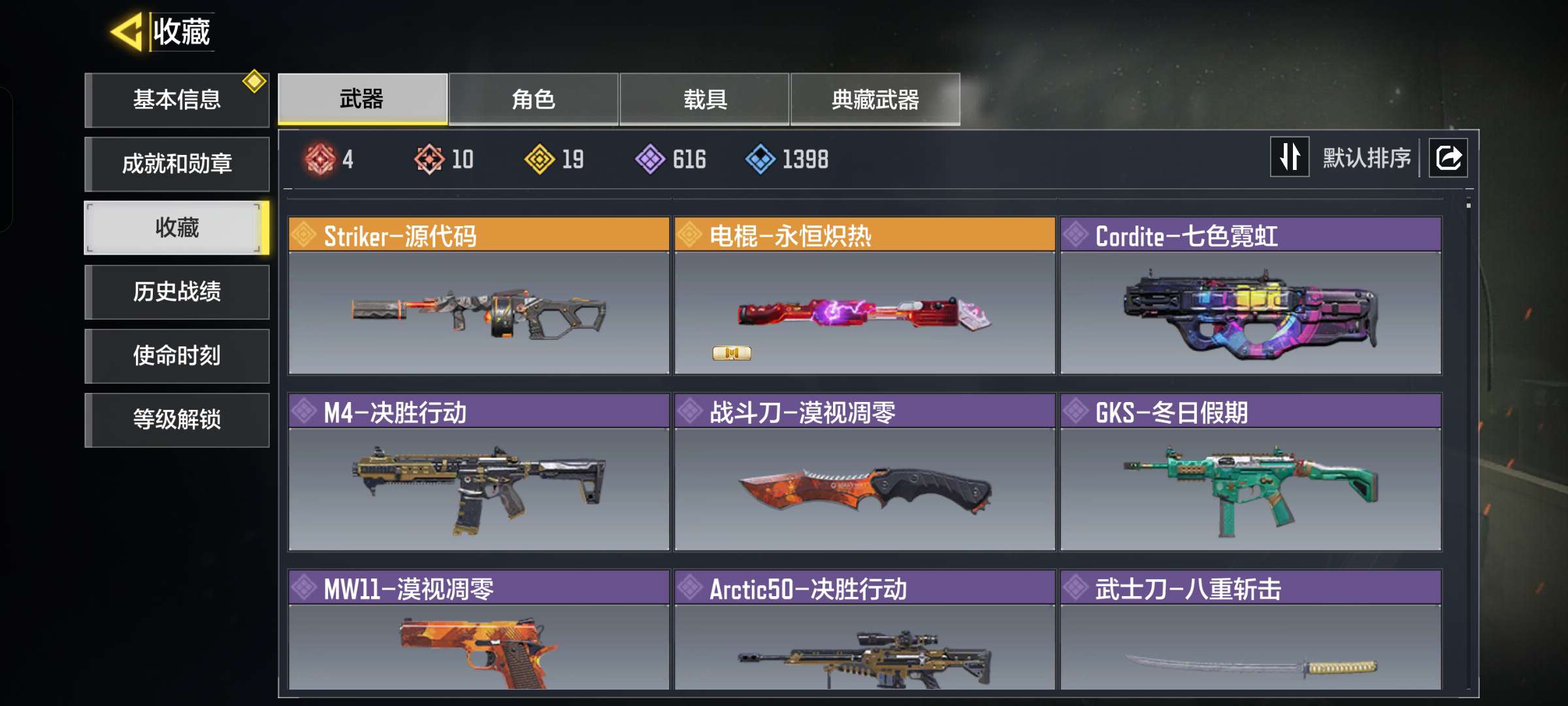 10神话,19传说,一个传说人物,4把满级