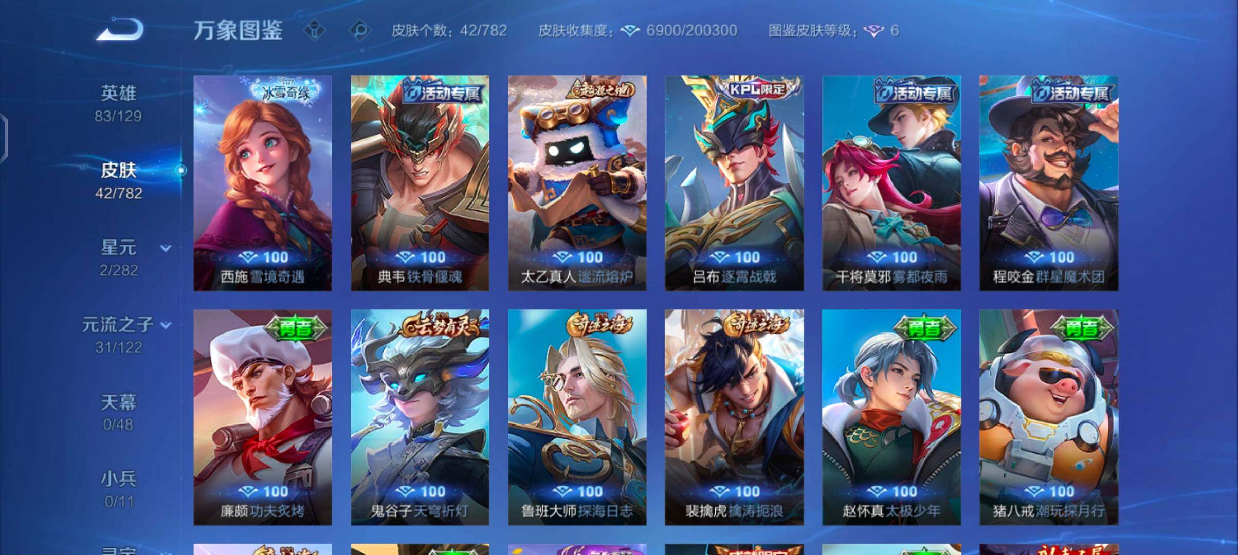 【限定皮肤】:狄仁杰阴阳师,裴擒虎擒涛扼浪,鲁班大师探海日志,桑启海盐诗旅,鬼谷子天穹祈灯,程咬金群星魔术团