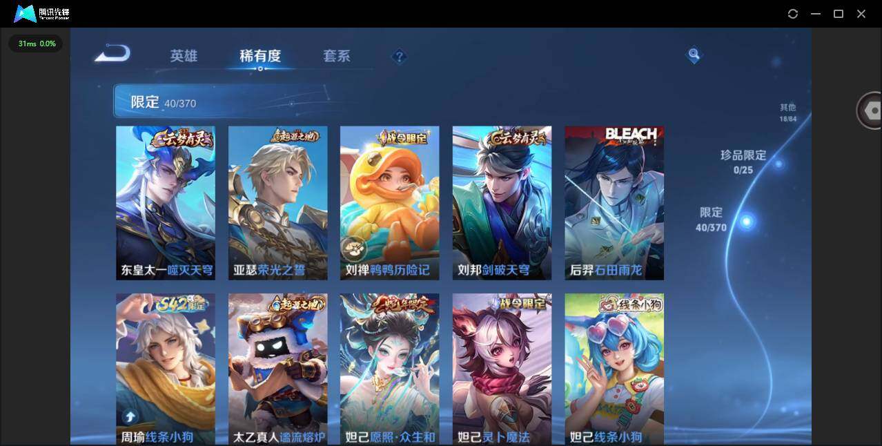 贵族等级: V7 英雄数: 99 皮肤数: 130 荣耀水晶: 天鹅之梦 传说