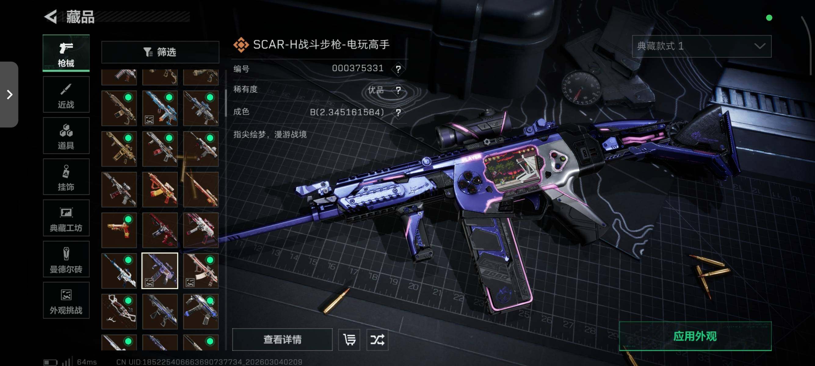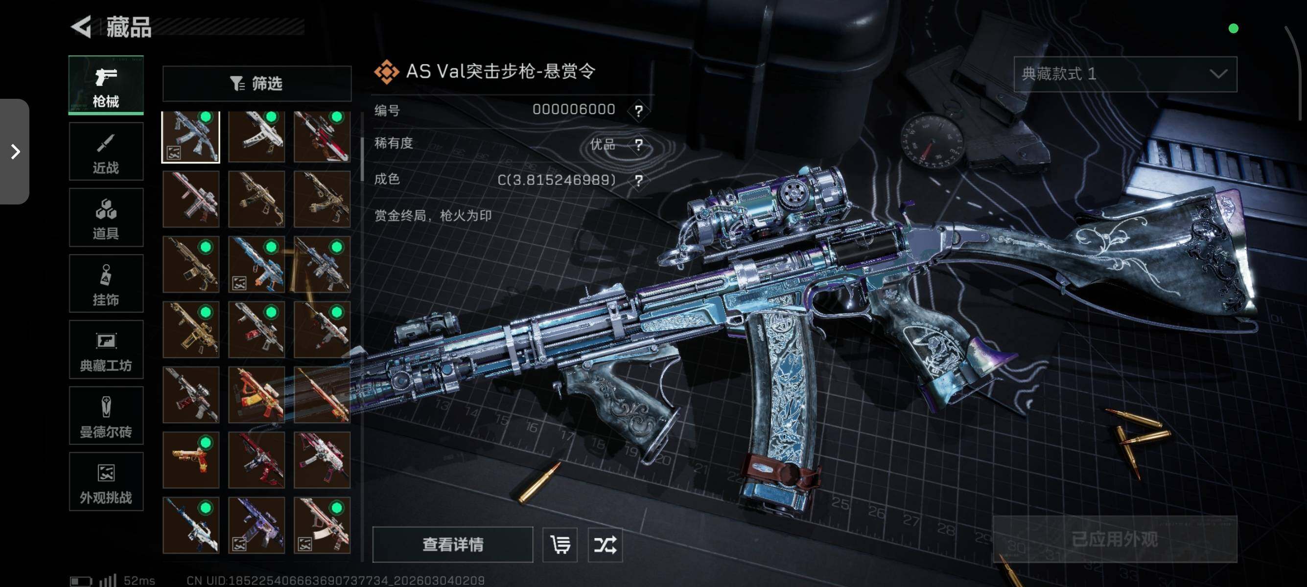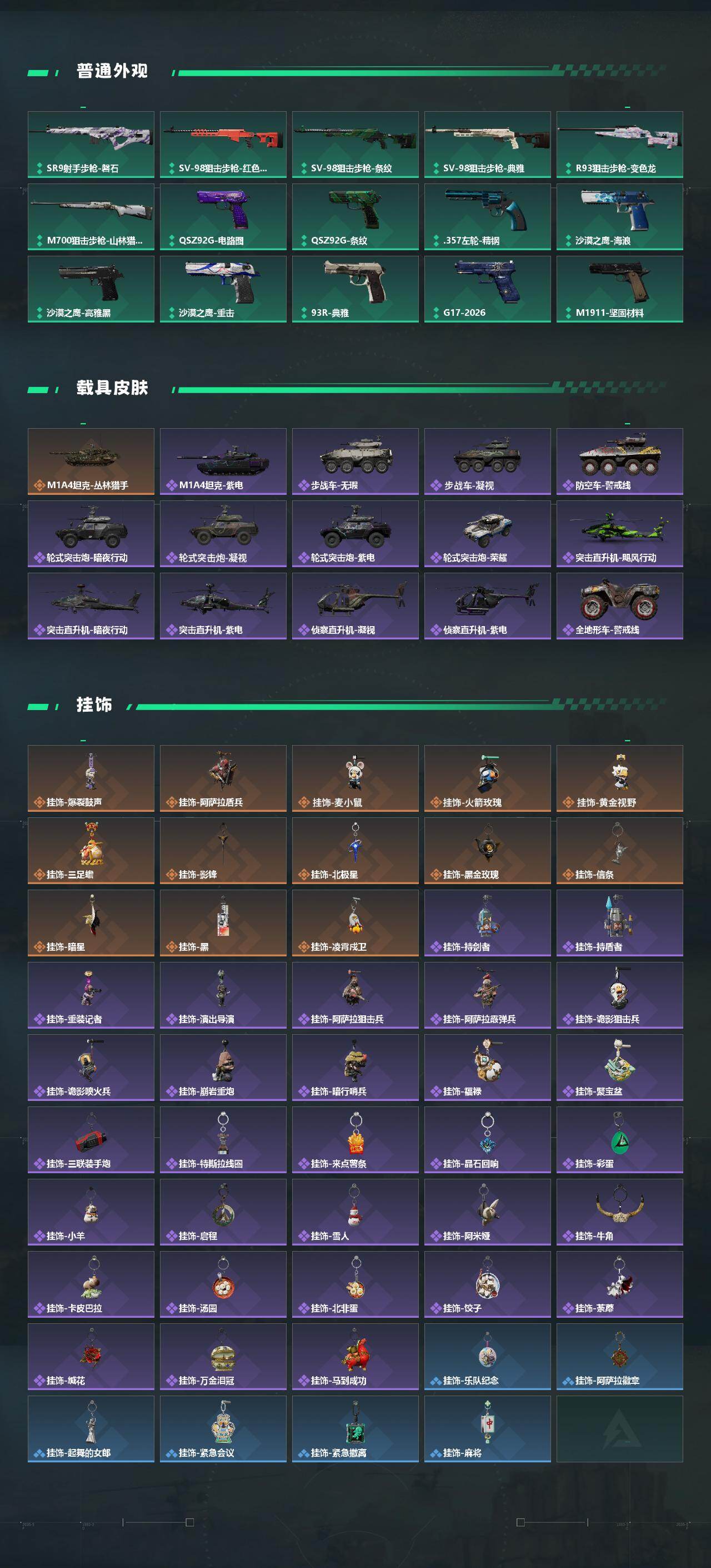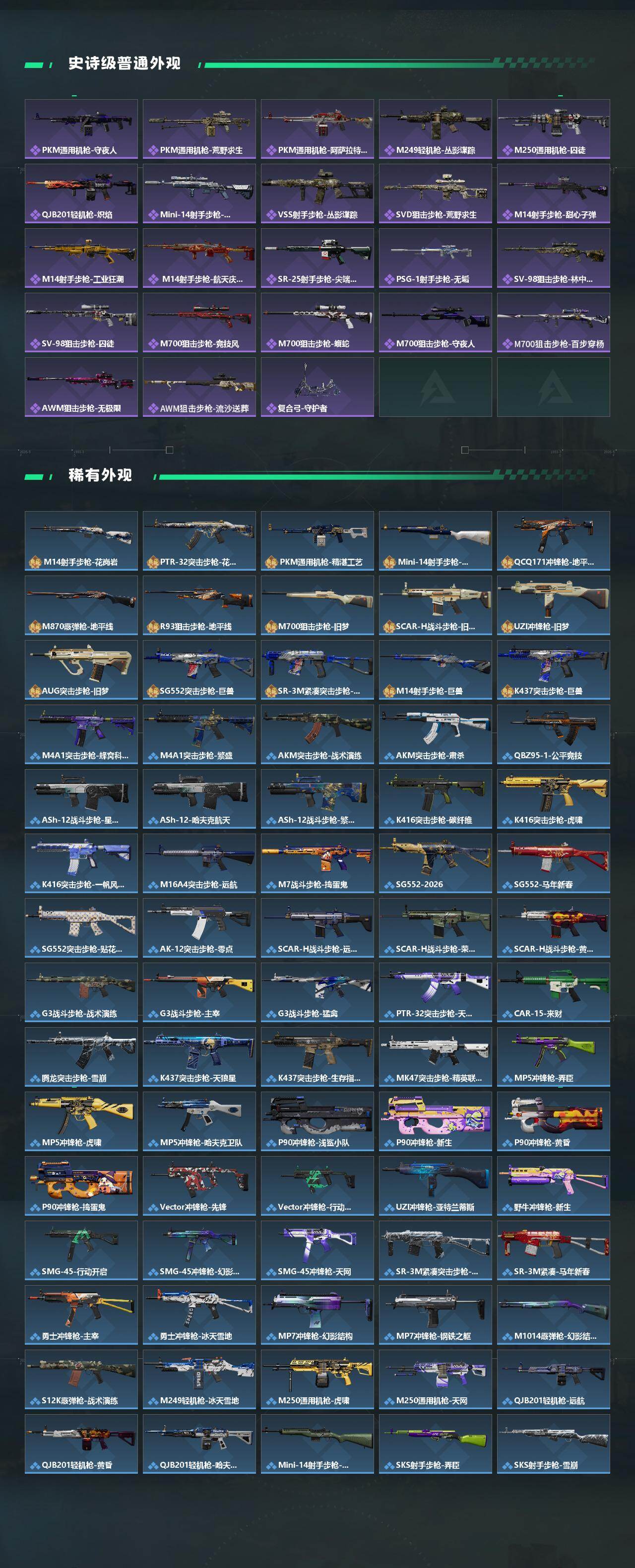 【典藏外观】:SCAR-H战斗步枪-电玩高手,腾龙突击步枪-气象感应,M7战斗步枪-棱镜攻势S2,AS Val突击步枪-悬赏令