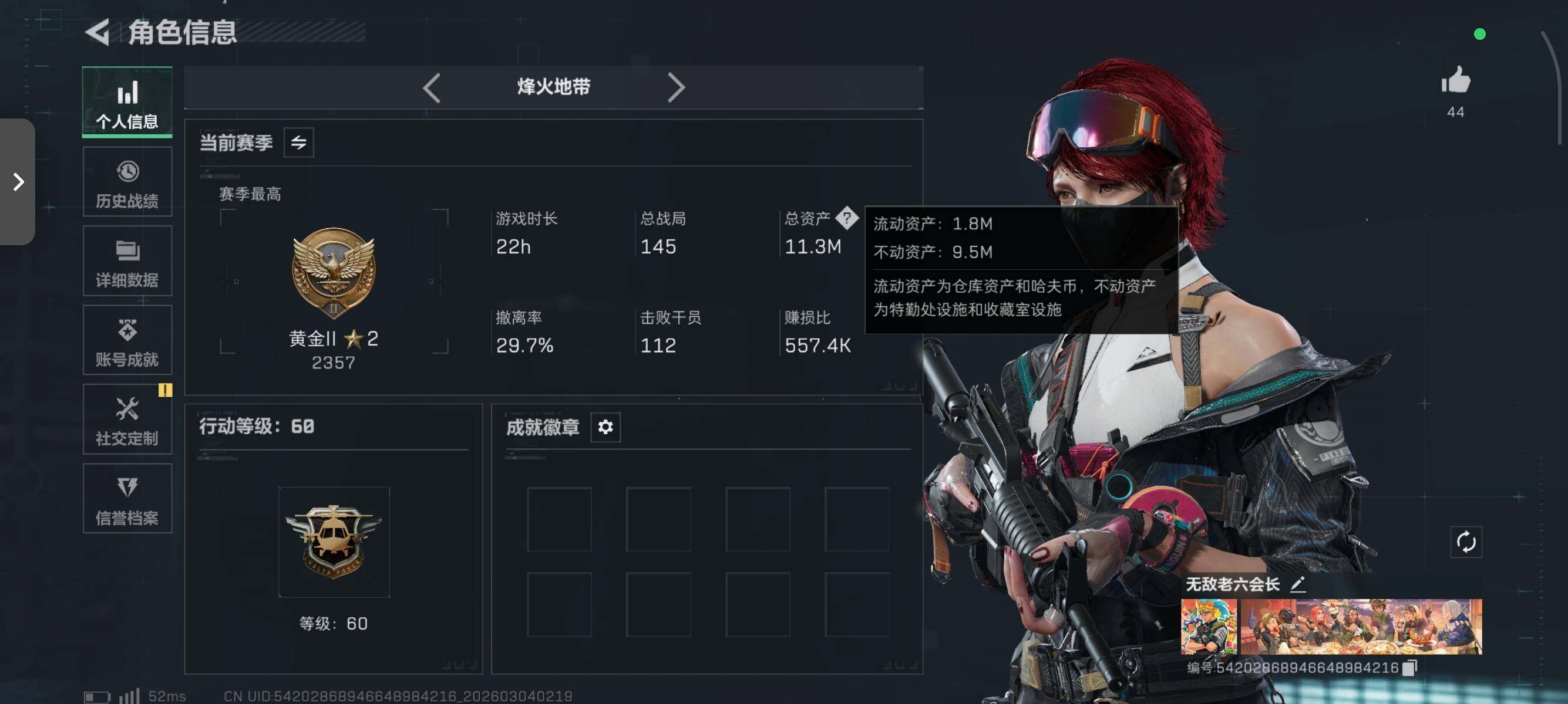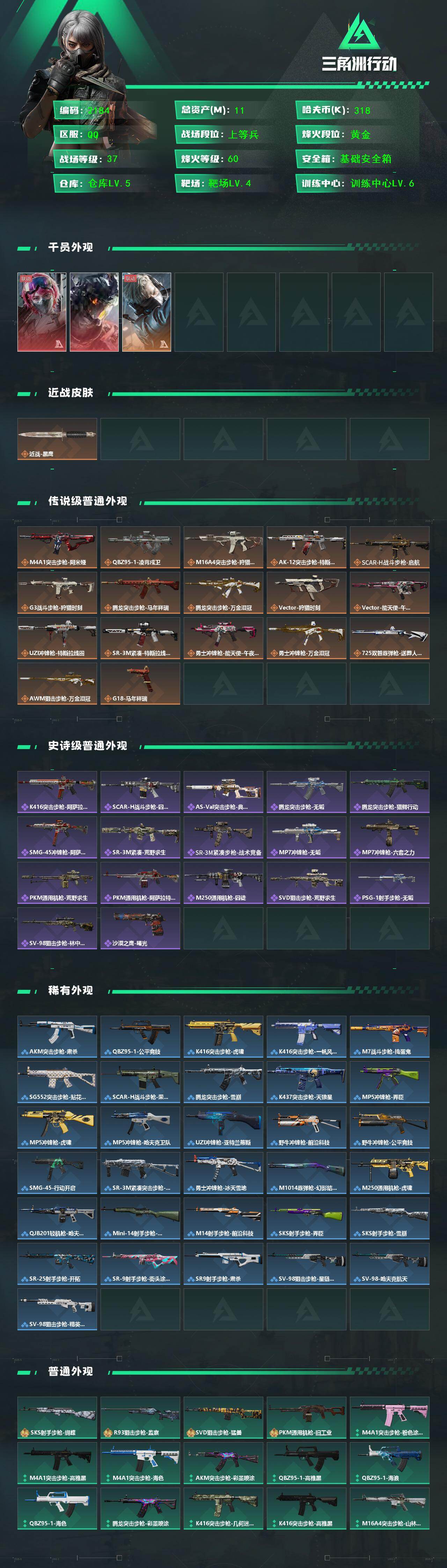 11m总资产-318k哈伏币-60烽火等级-黄金-37战场等级-上等兵【干员