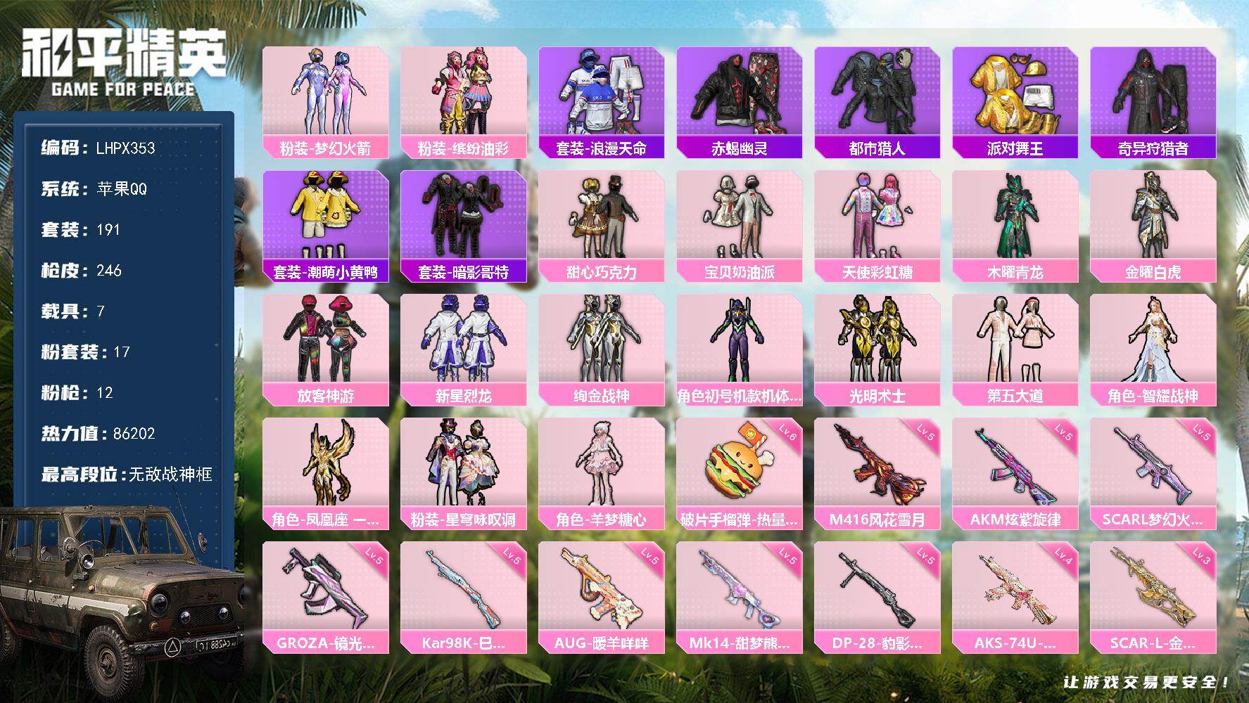 ]苹果 手Q-无敌战神框-17粉装-12特效枪-7载具-12粉