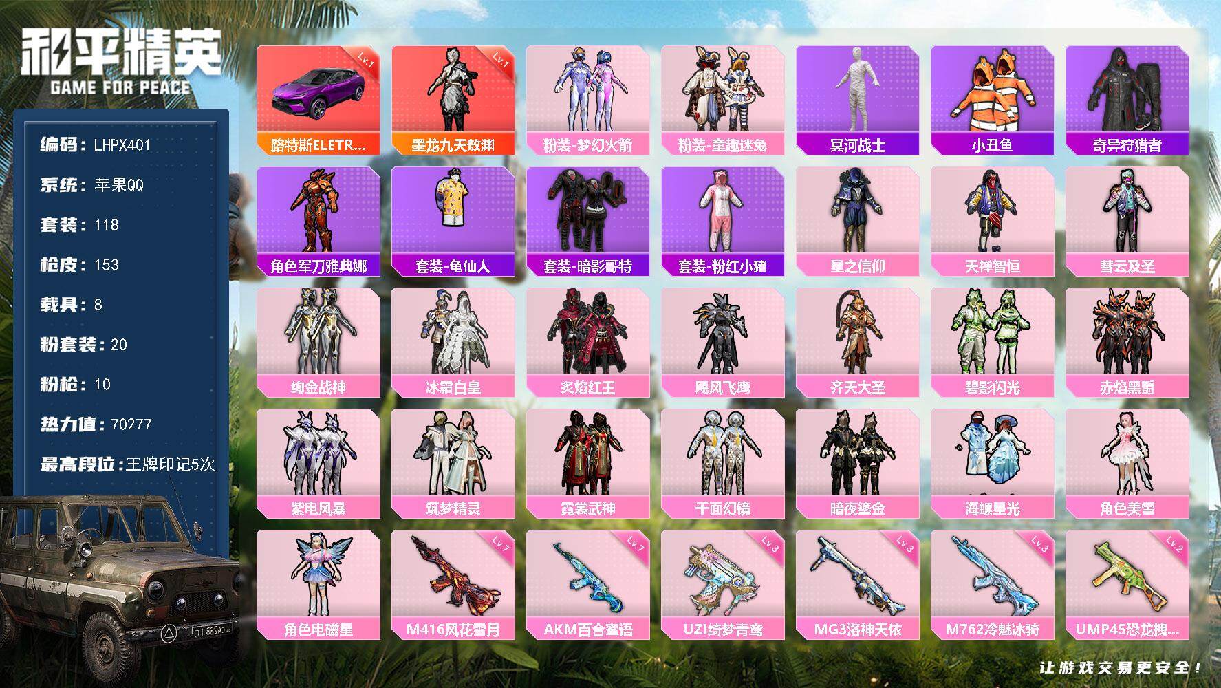 苹果 手Q-1神装-20粉装-10特效