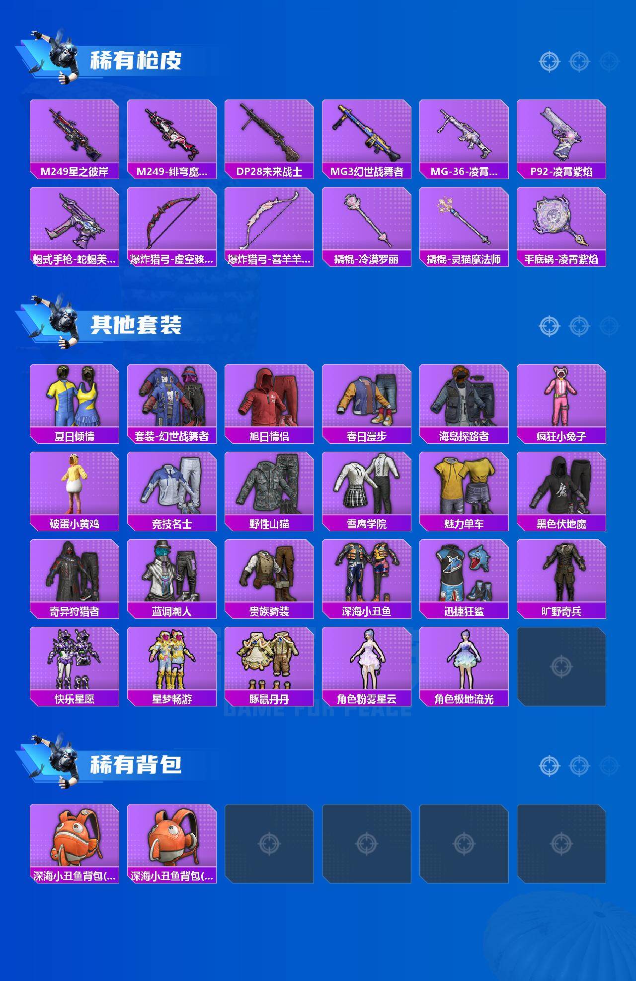 1神装-3粉装-7特效枪-3载具-4粉色飞行器-