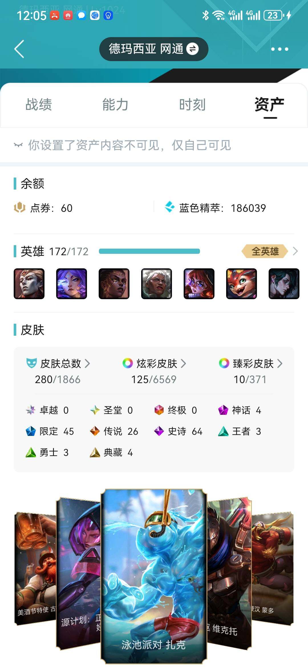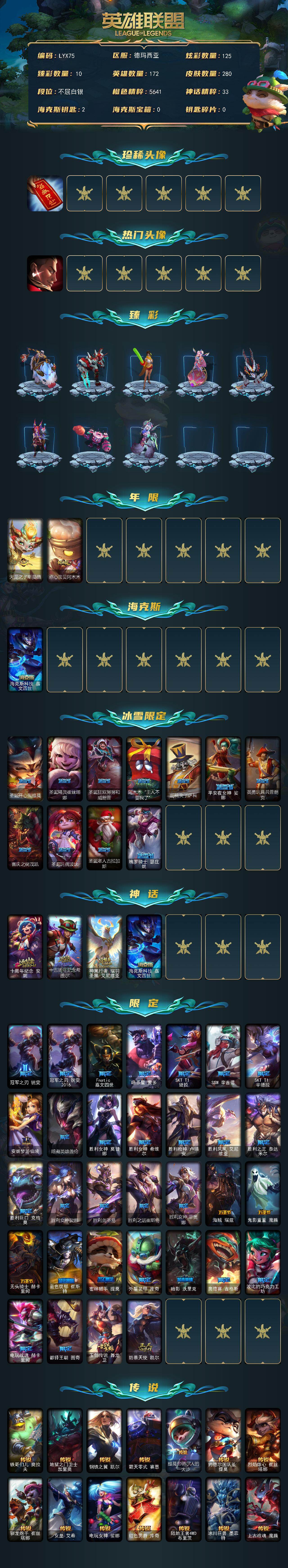 [17302841]可二次【特价出售/店主推荐】白银段位-172英雄-280皮肤-1